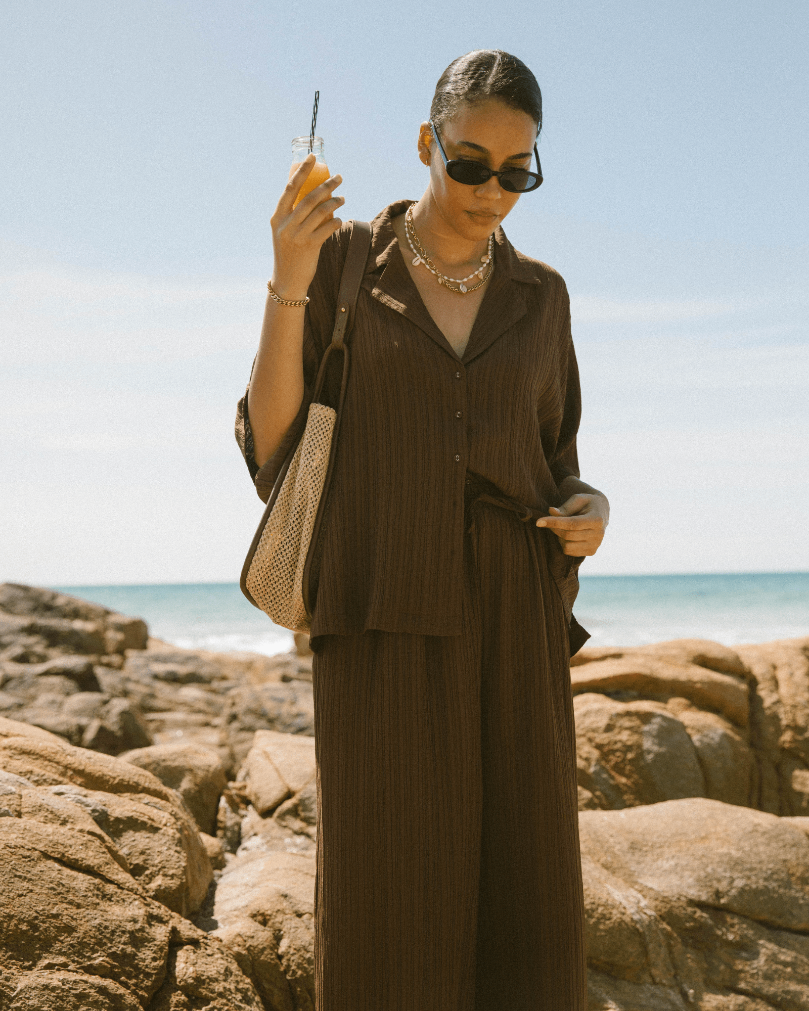 Comfort, but make it cute. Our Posey Pants are basically your new uniform for everything from couch hangs to cocktails. With their oversized, flowy fit and breezy fabric, these pants are ready to take you from bed to beach to “oh, this old thing?” brunch plans without breaking a sweat.