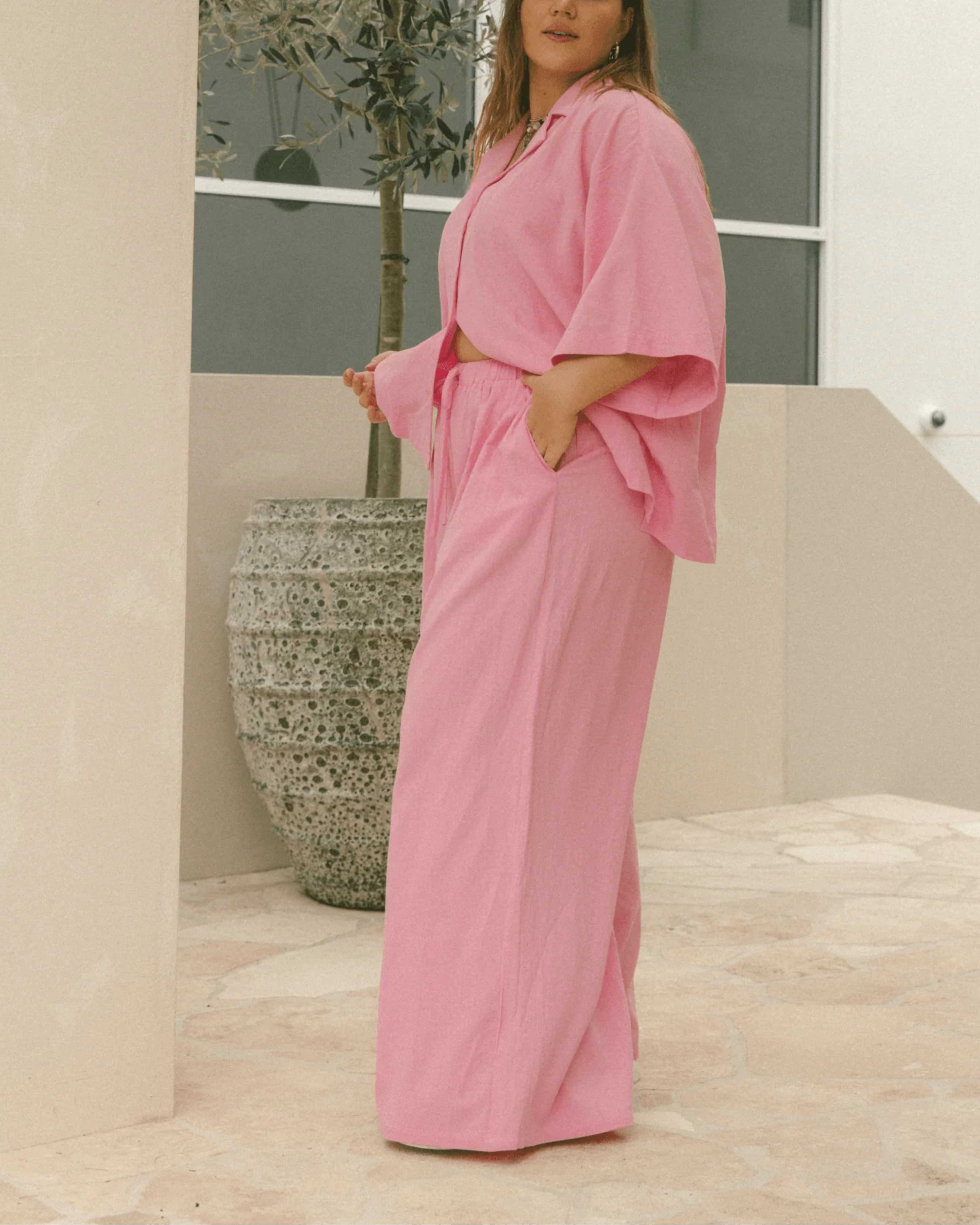 Comfort, but make it cute. Our Posey Pants are basically your new uniform for everything from couch hangs to cocktails. With their oversized, flowy fit and breezy fabric, these pants are ready to take you from bed to beach to “oh, this old thing?” brunch plans without breaking a sweat.
