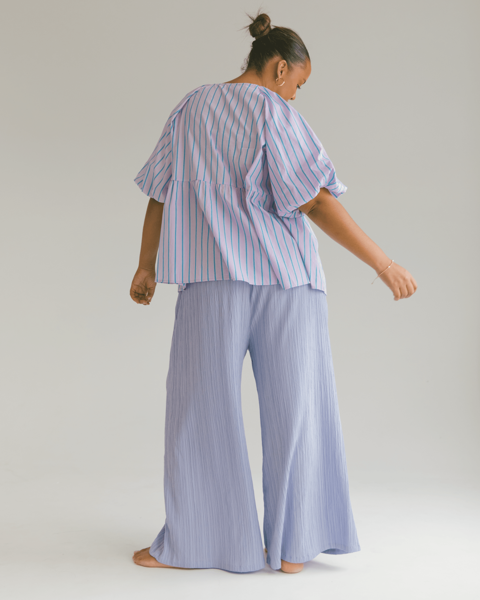 Our Crepe styles are crafted from a beautiful, breathable blend designed for comfort and elegance. Due to the nature of the loose weave, this fabric is more delicate than our cotton and linen pieces and requires extra care to maintain its quality and longevity.