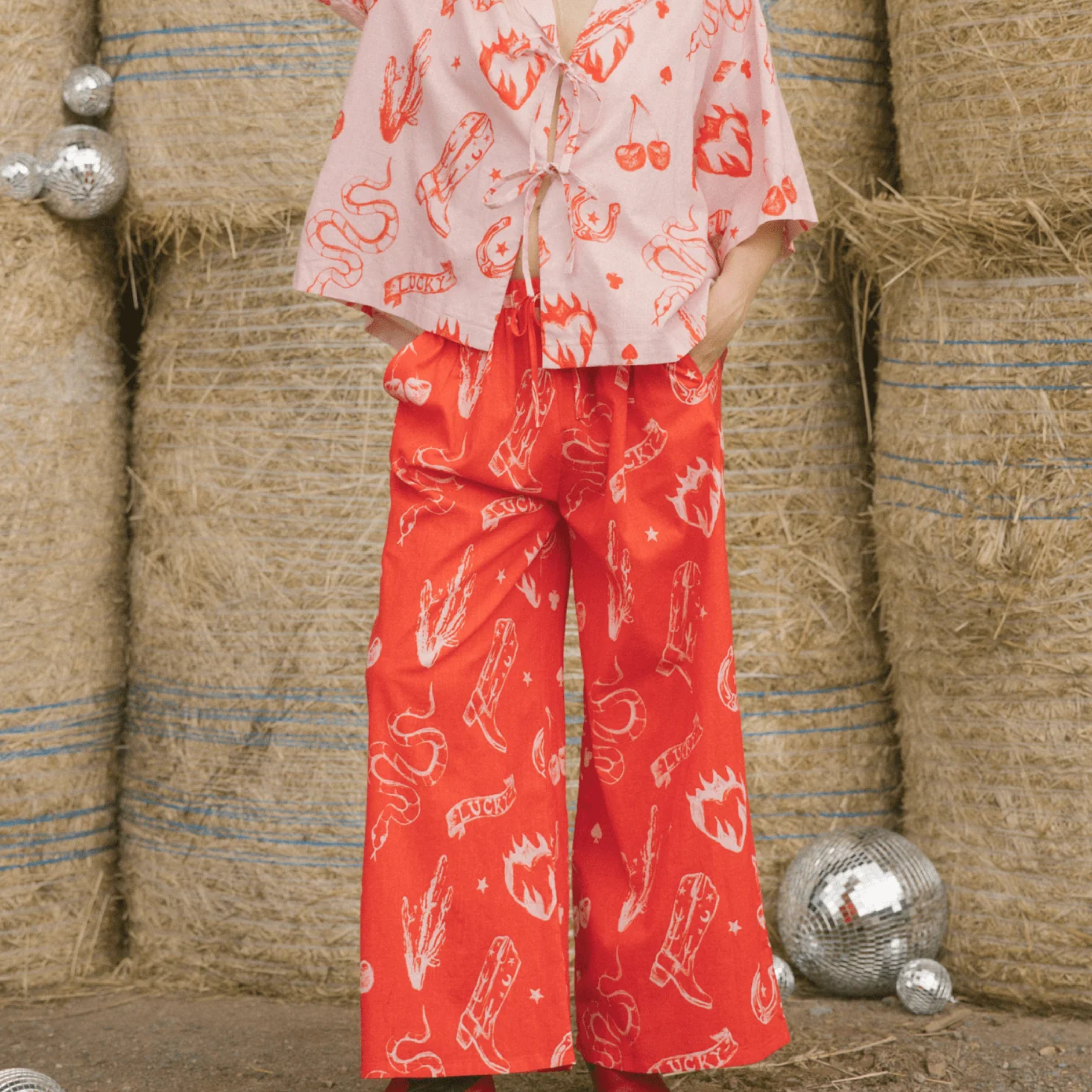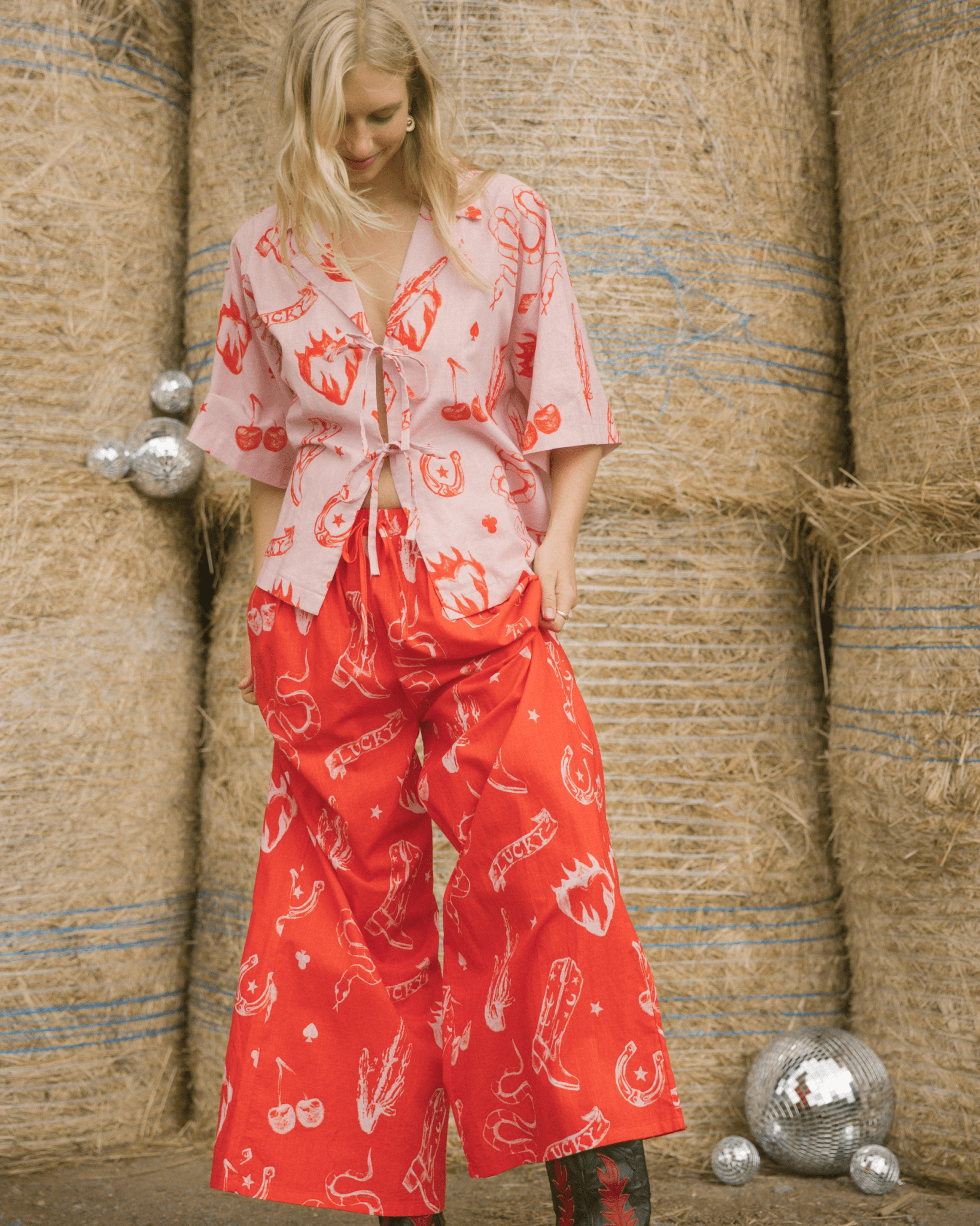 Comfort, but make it cute. Our Posey Pants are basically your new uniform for everything from couch hangs to cocktails. With their oversized, flowy fit and breezy fabric, these pants are ready to take you from bed to beach to “oh, this old thing?” brunch plans without breaking a sweat.