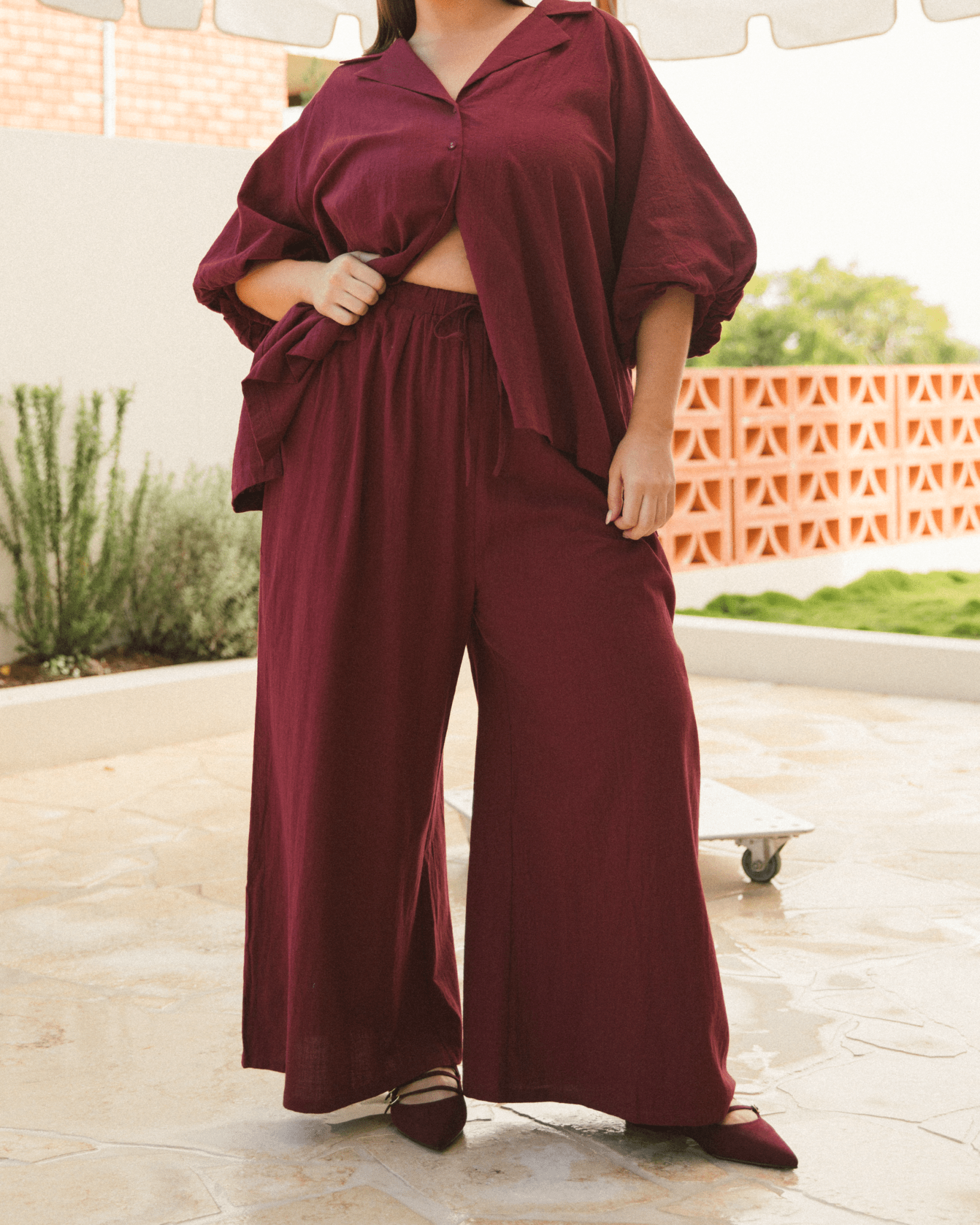 Comfort, but make it cute. Our Posey Pants are basically your new uniform for everything from couch hangs to cocktails. With their oversized, flowy fit and breezy fabric, these pants are ready to take you from bed to beach to “oh, this old thing?” brunch plans without breaking a sweat.