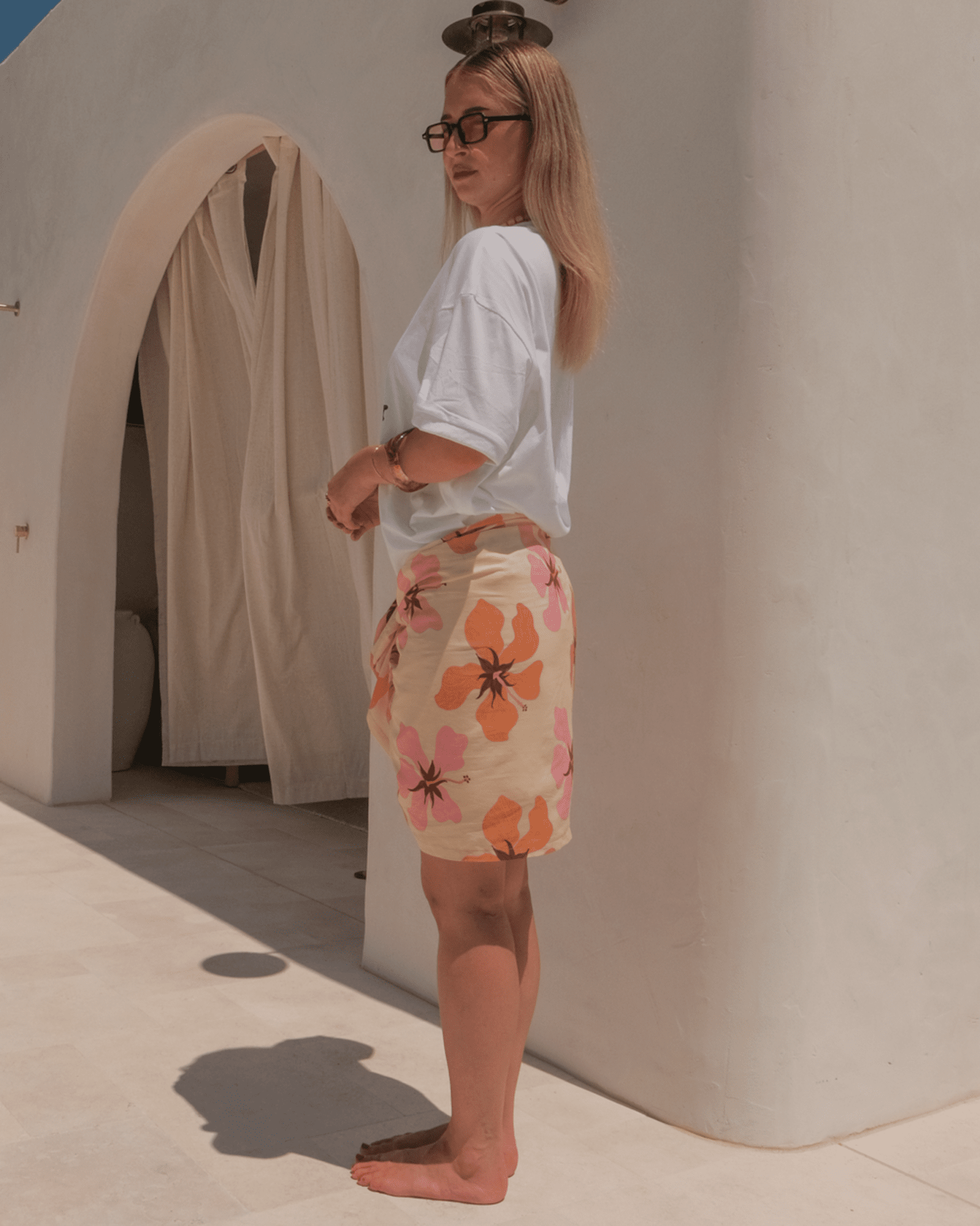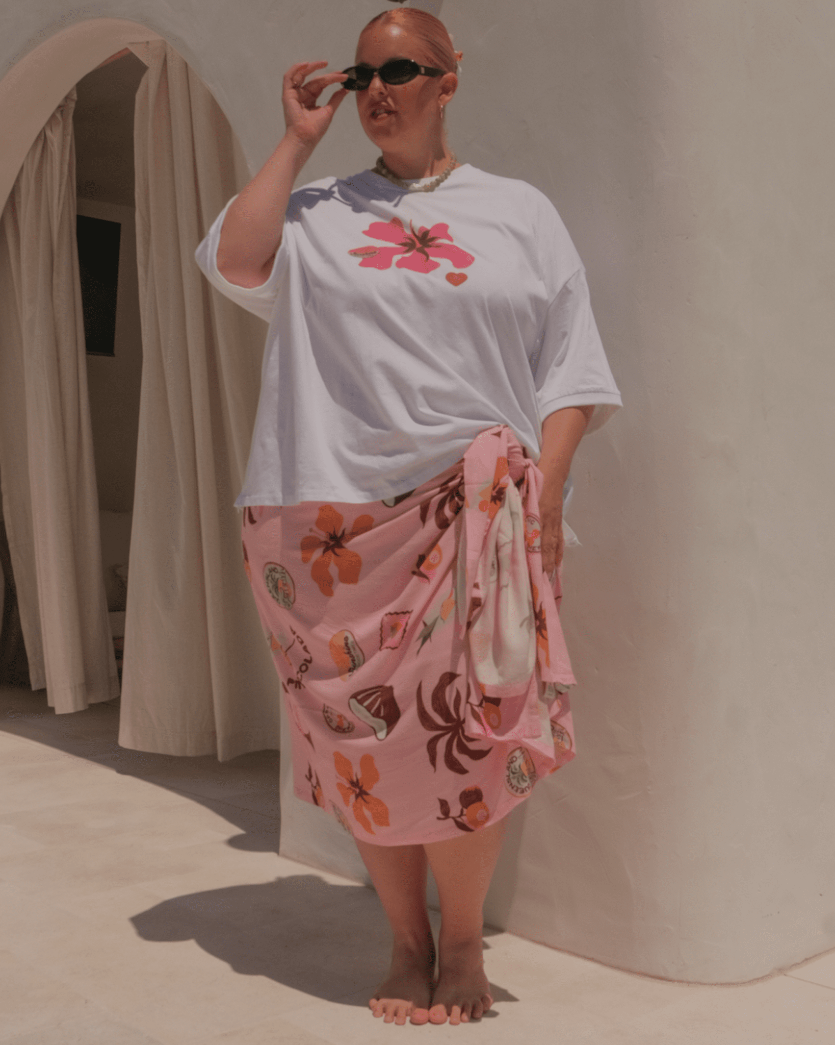 Tie her over swimwear for an easy beach-to-brunch look, wrap her as a top, or use her as a light picnic throw — she does it all. Featuring our playful Orchid Sunset print, she brings a little bit of sunshine and a whole lot of fun wherever you go.