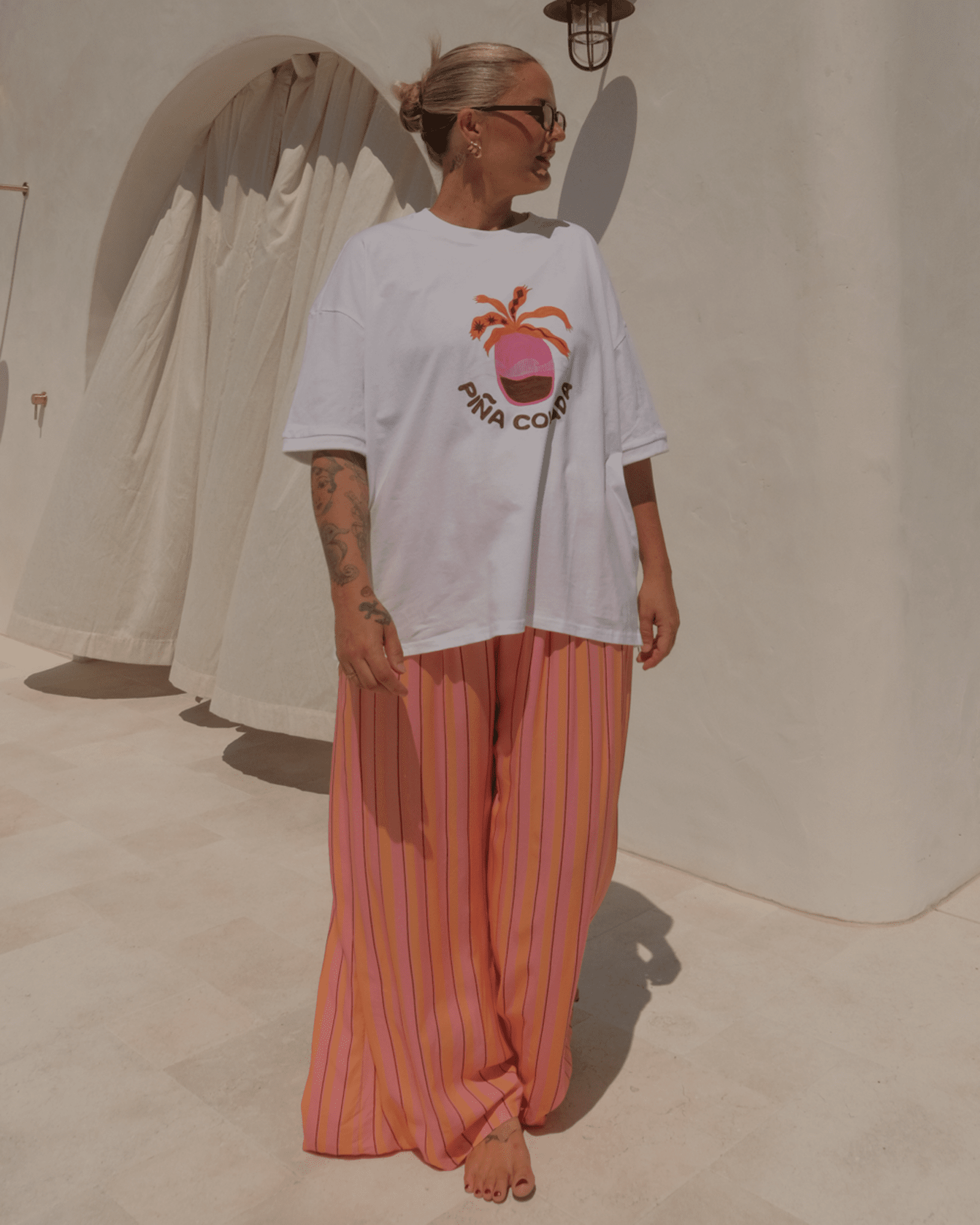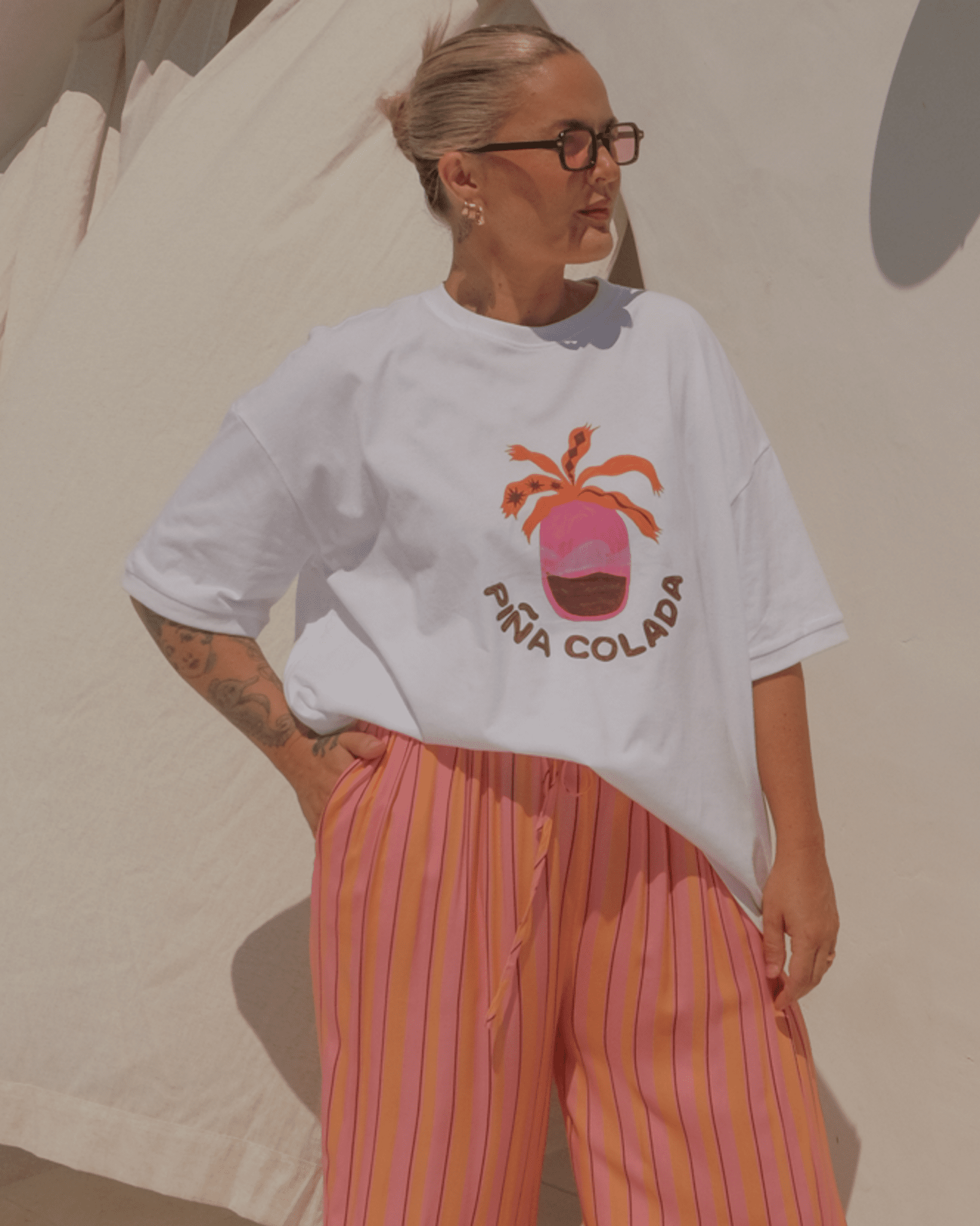 Crafted from 100% breathable cotton, this tee is lightweight, soft, and perfect for all-day wear. Part of our Cabana Club Collection, the unique print adds a touch of personality and charm to this must-have essential.