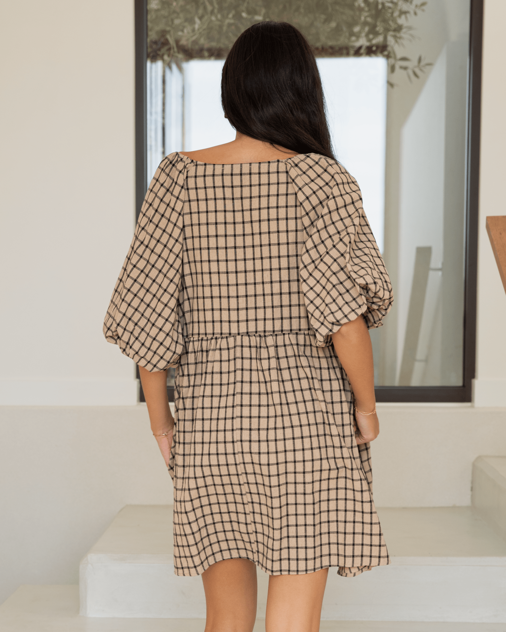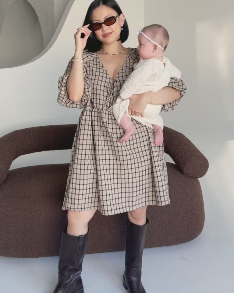 Frankie Mini Dress | Neutral Gingham