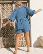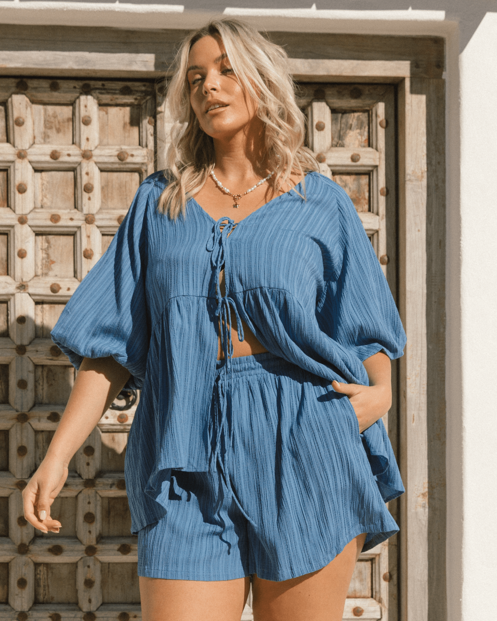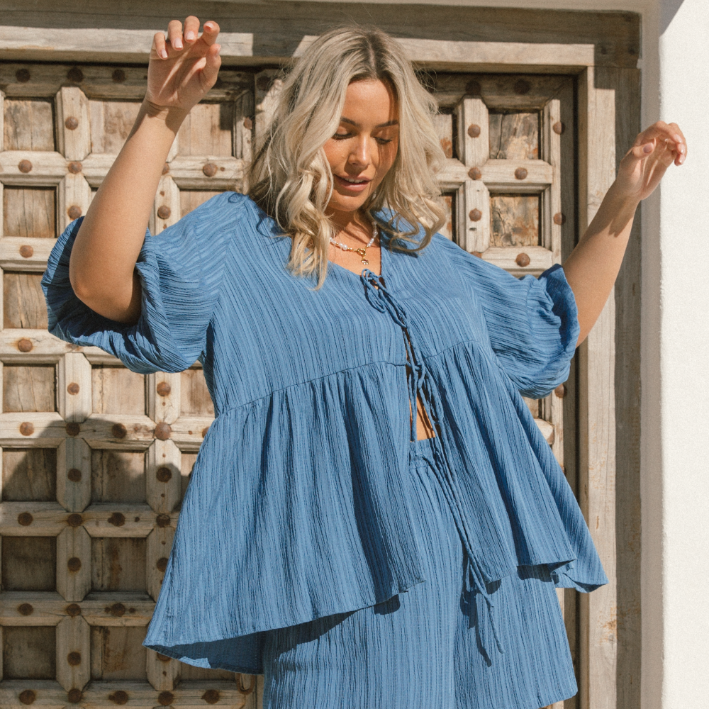 Crafted from a dreamy Viscose & Cotton blend fabric, the Frankie Top is your new everyday go-to with main character charm. Featuring a cross-over bust, floaty puff sleeves, and a cute front-tie moment, she’s breezy, easy, and ready for whatever your day throws at you.