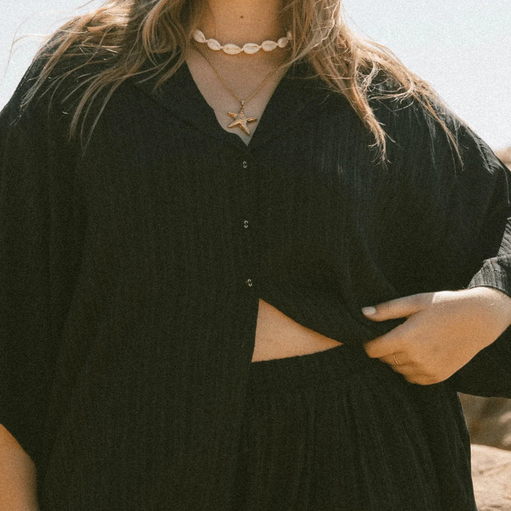 Meet your new forever favourite: the Lacey Lounge Shirt. You know the girl in high school that was cool without trying to be? This is her. Oversized, drapey in all the right places, and easy to throw on – it’s giving main character with minimal effort.