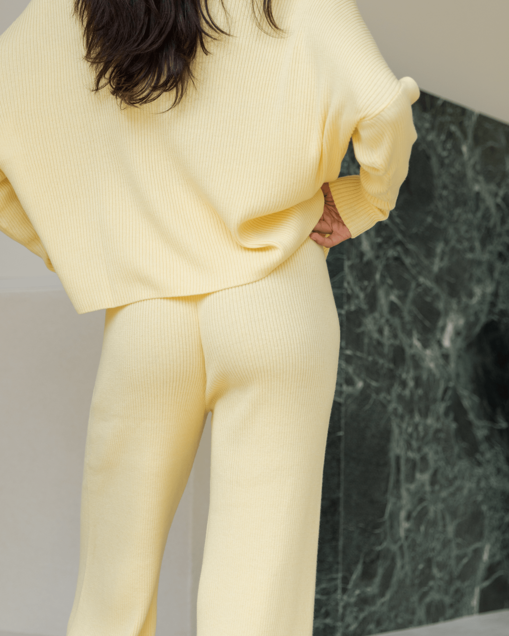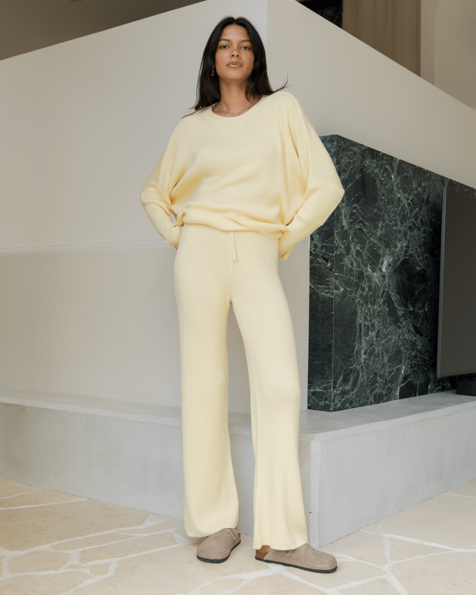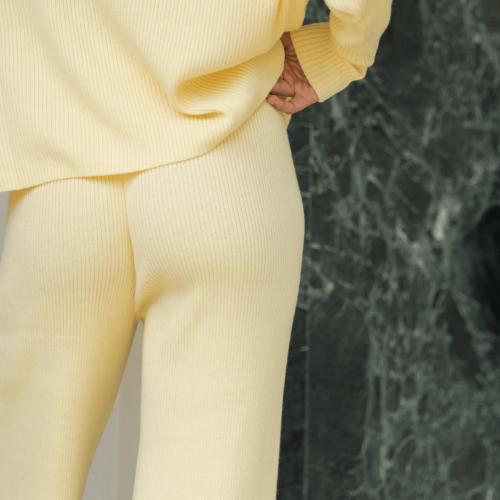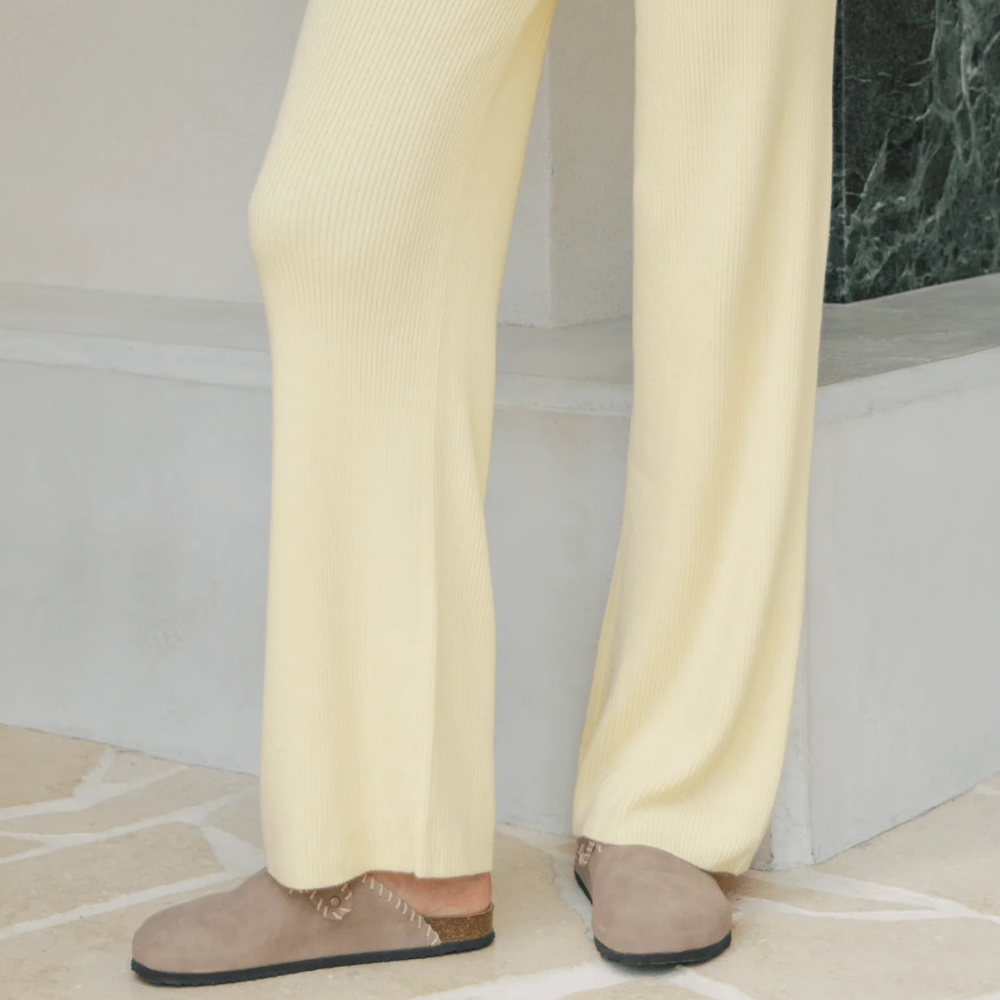 Meet the Alex Knit Pants — the effortlessly comfy bottoms that make “I just threw this on” look like a whole vibe. With their relaxed flared fit and dreamy ribbed texture, these are the pants you’ll reach for when jeans just aren’t on the mood board (so… most days).