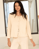 Meet your new layering MVP. The Petria Cardi is a 60% Cotton 40% Acrylic dream—soft, breathable, and effortlessly chic. With a relaxed fit, button-up front, and playful tie-neck detail, it’s the perfect throw-on for everything from couch lounging to coffee dates. Comfort, but make it cool.