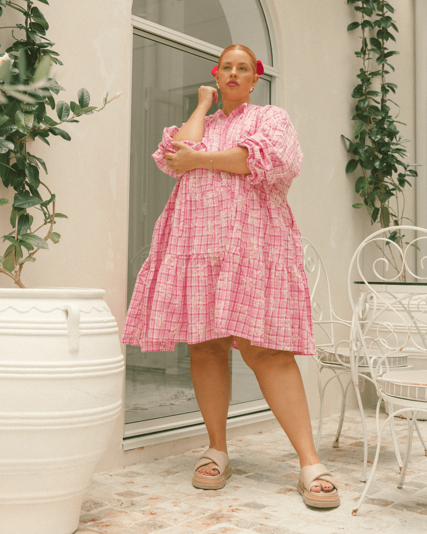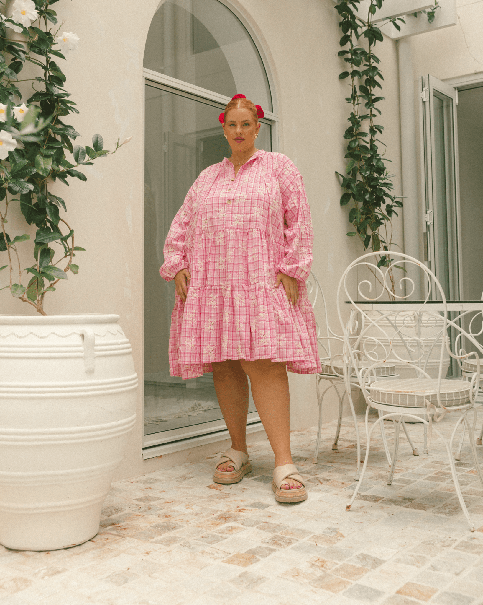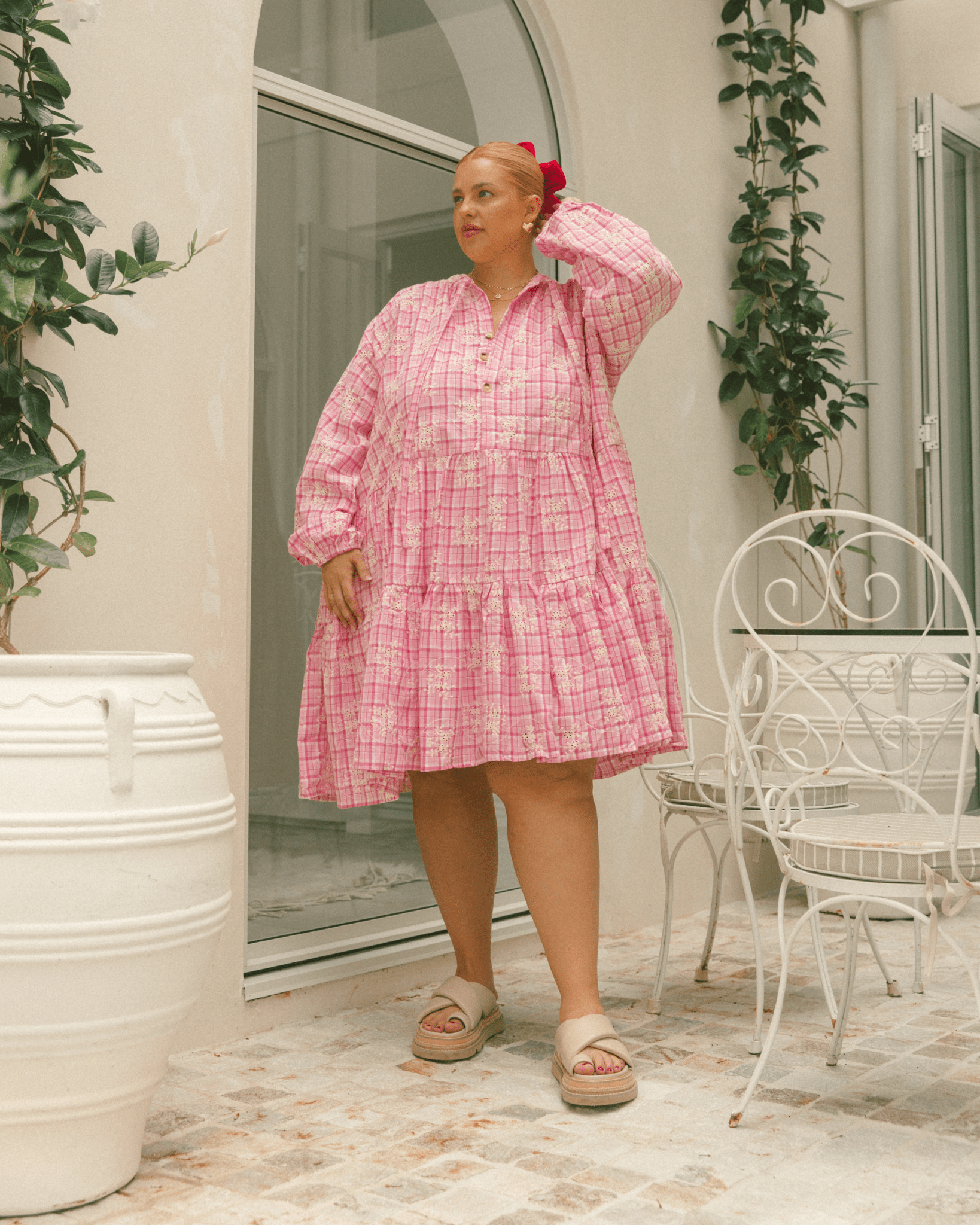Maxi Avalon Smock Dress | Pink Gingham Embroidery