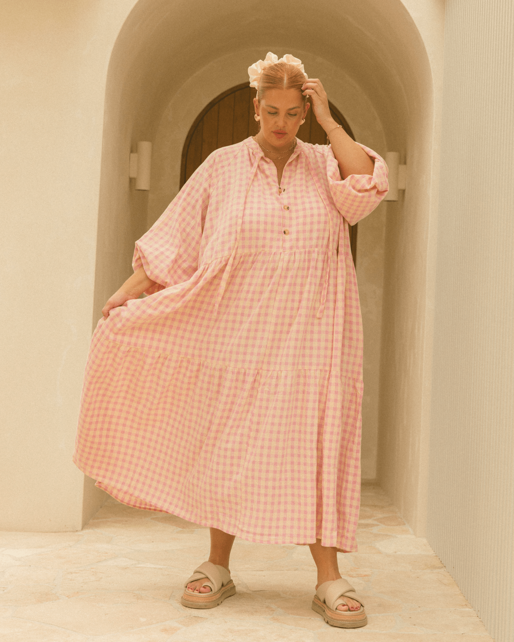 Maxi Avalon Smock Dress | Pink/Yellow Gingham