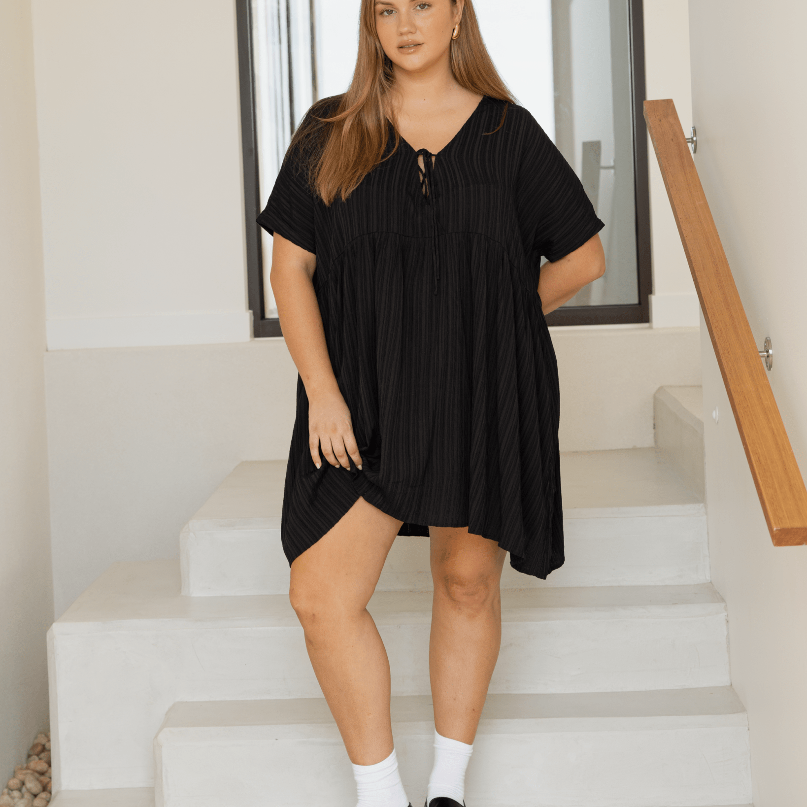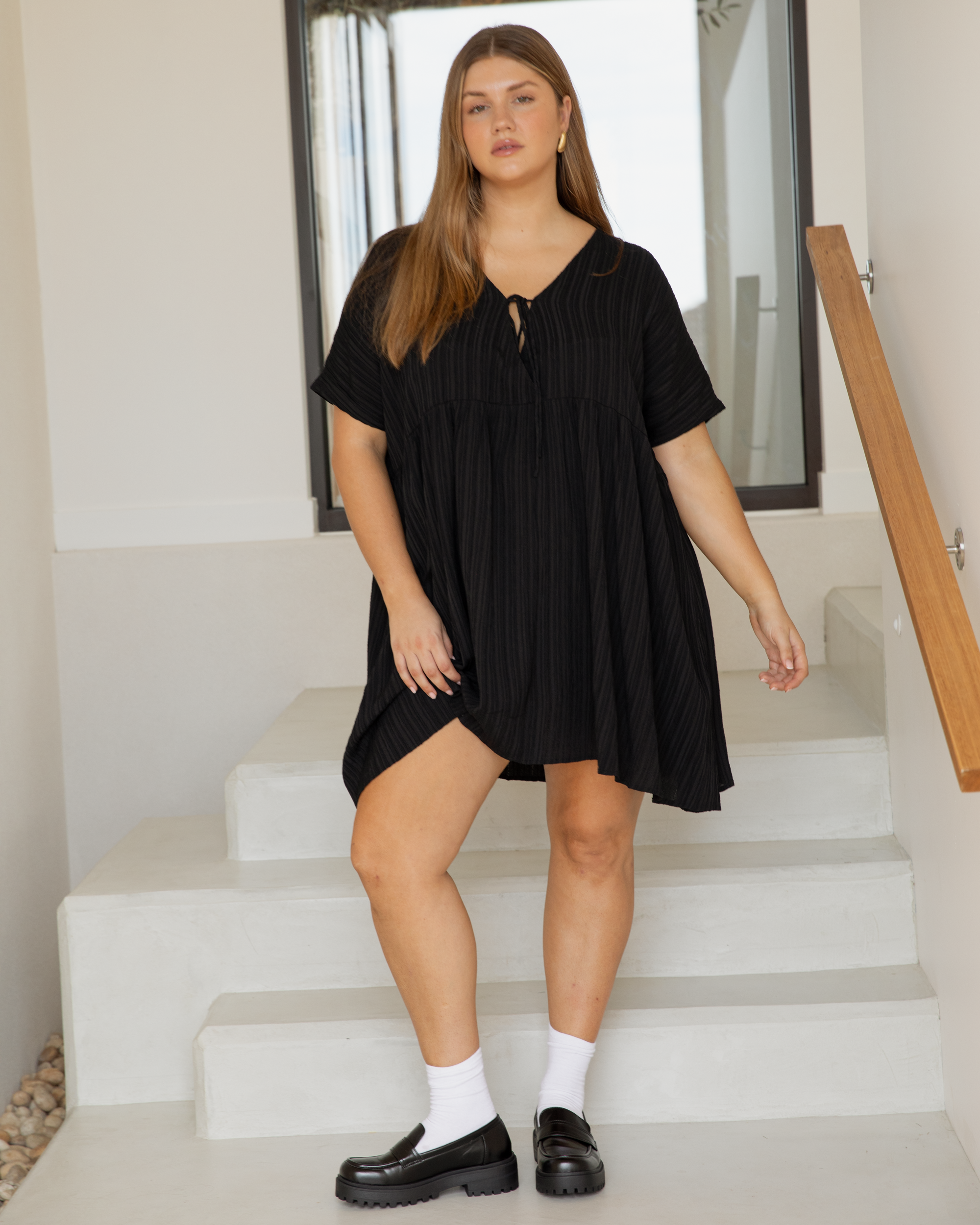 Meet the dress that’s equal parts cool, comfy, and can-do-anything. The Lainey Dress takes the classic smock silhouette and gives it a playful twist — think fluttery sleeves, a flowy oversized fit, and a front tie detail for just a hint of shape.