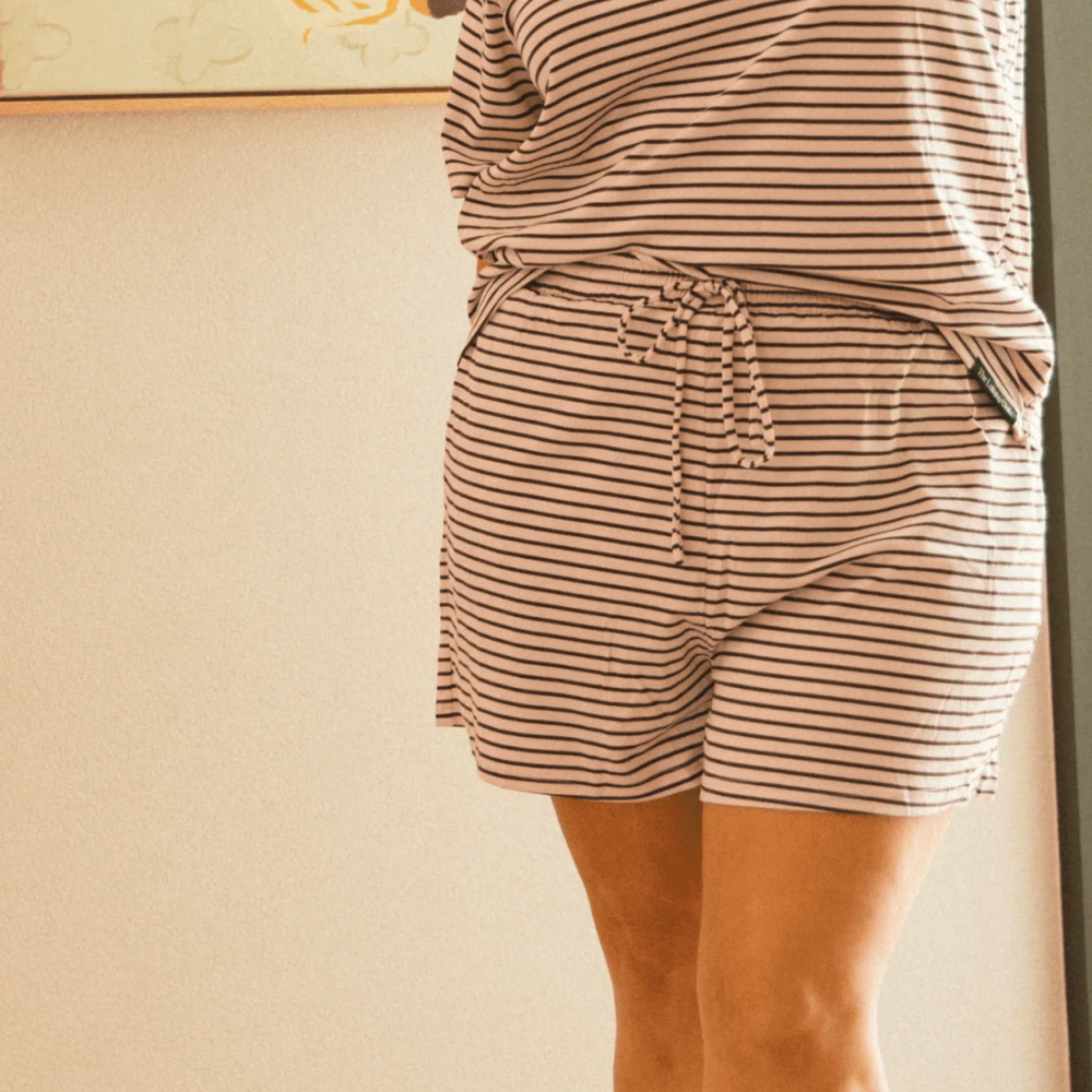 These aren’t just any lounge shorts. Ridiculously soft & stretches in all the right places and stays breathable when life gets a little sweaty. The high-rise elastic waist is there to love you through every snack break, toddler wrangle and “I forgot we had swimming today” moment.