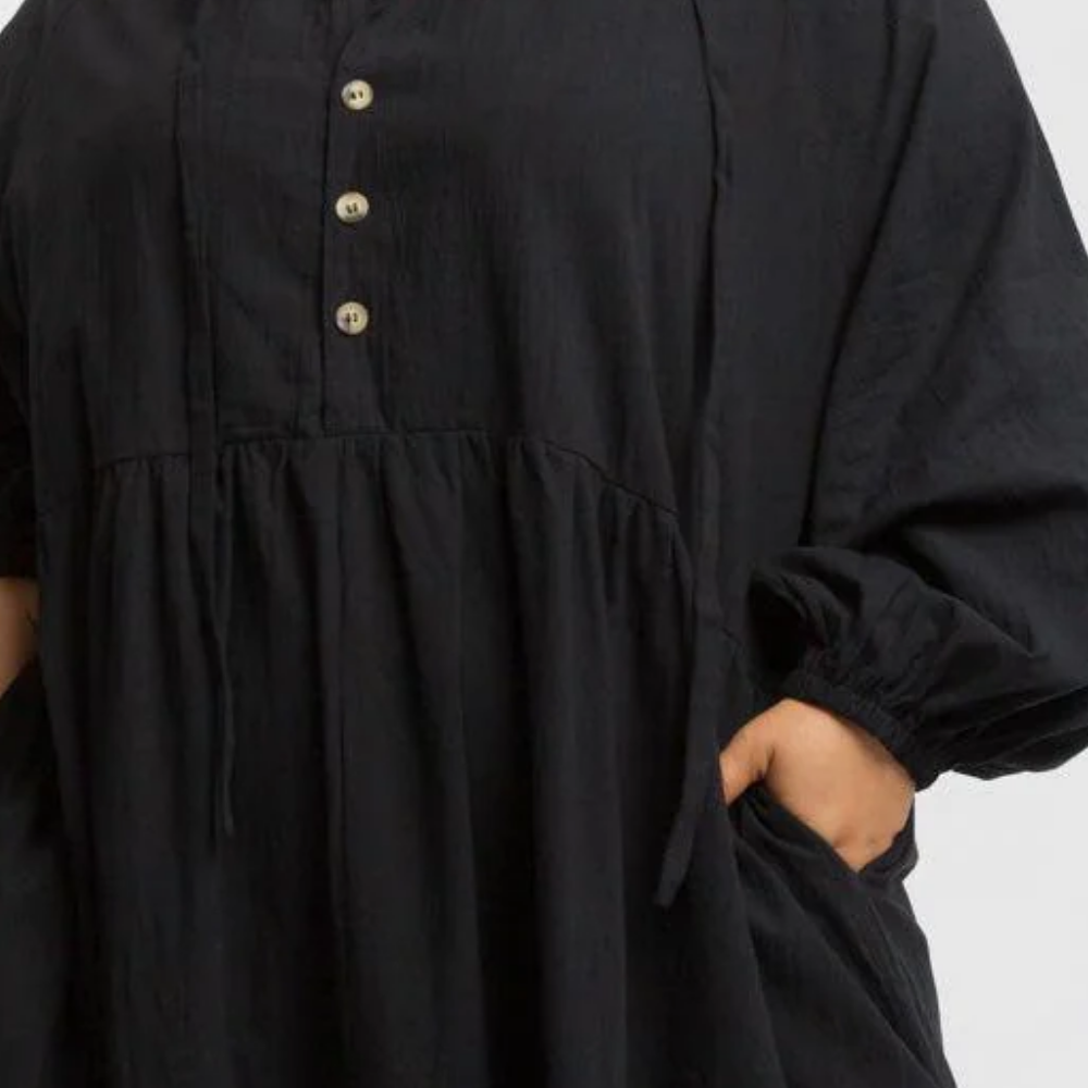 We’re talking billowed sleeves for the drama, functional buttons and pockets for the practicality. And yes — she’s made from 100% cotton, so it’s all breathable, all day.