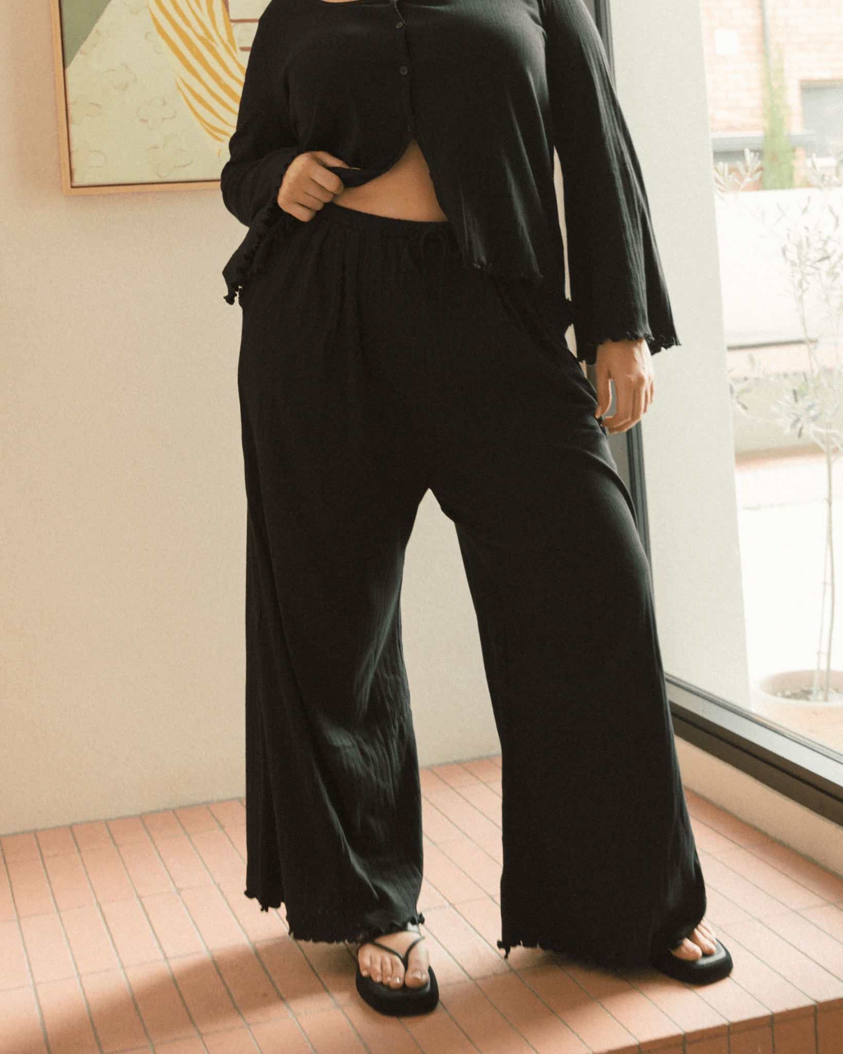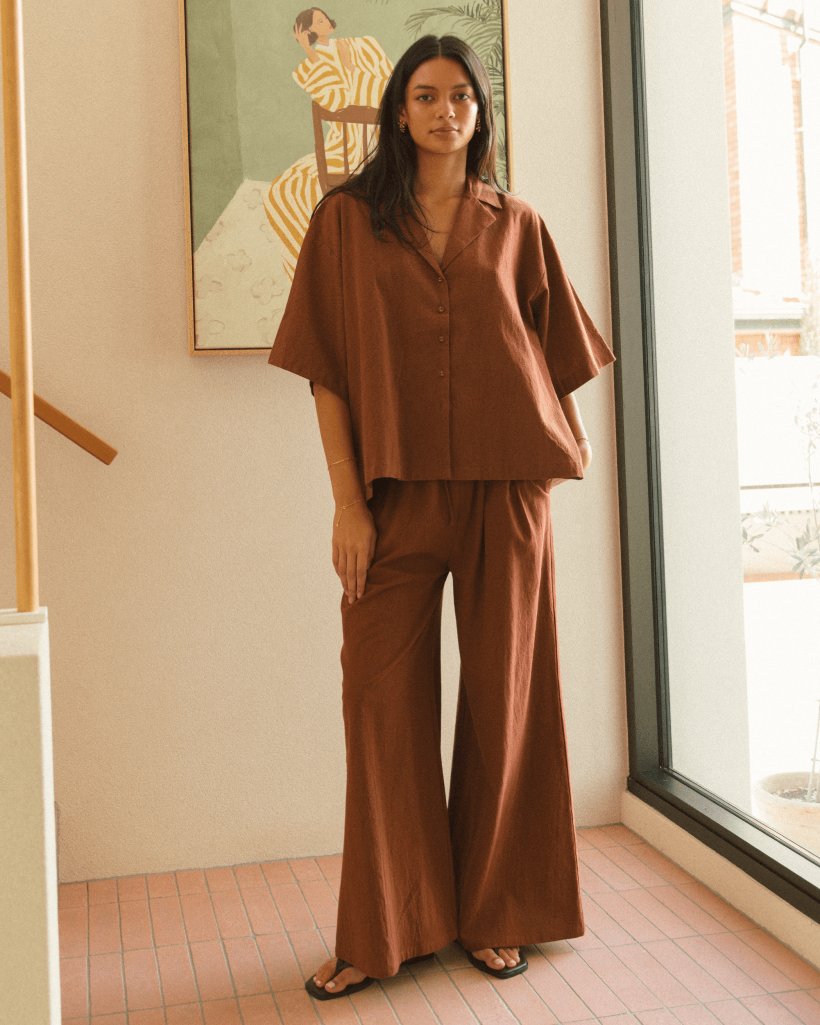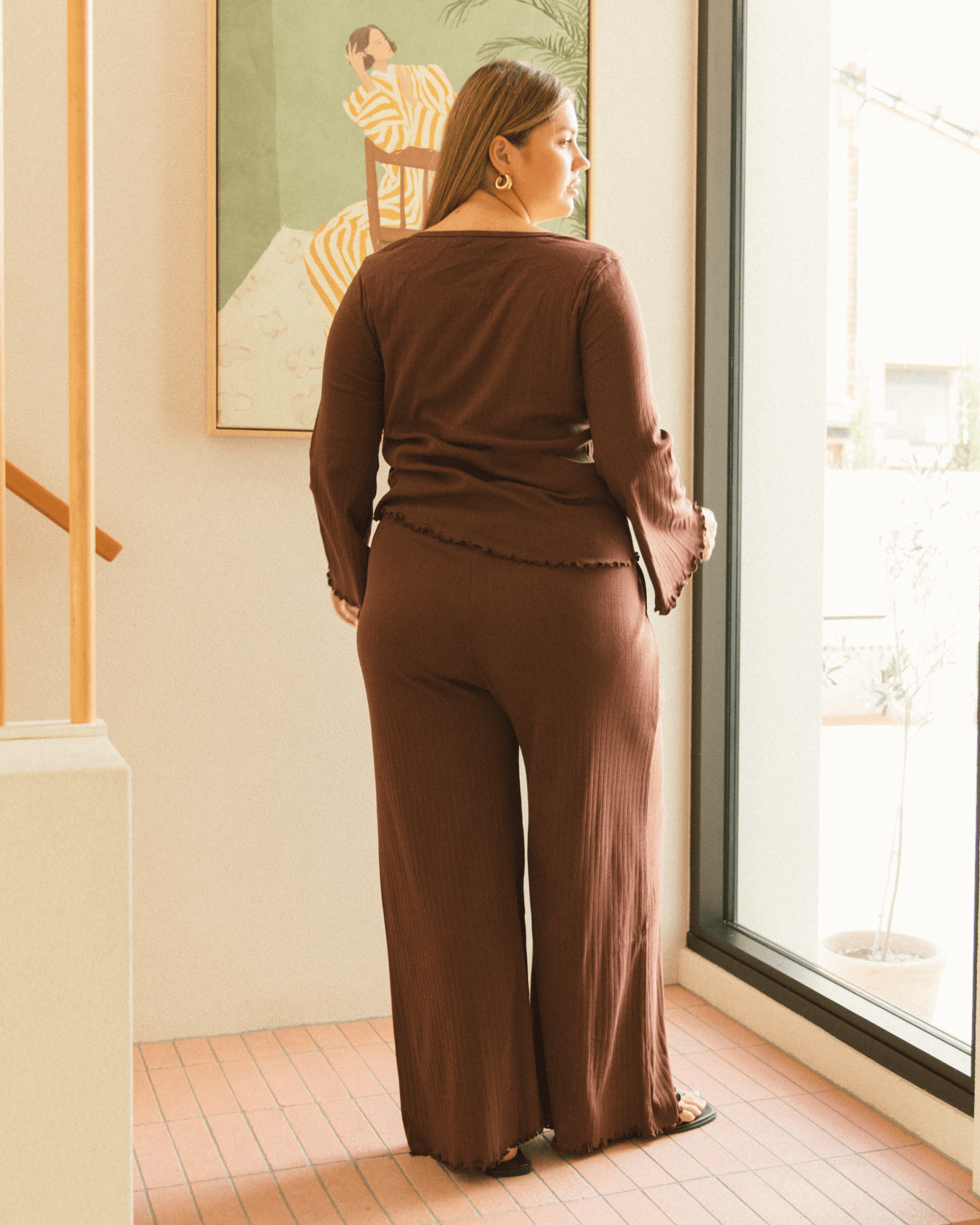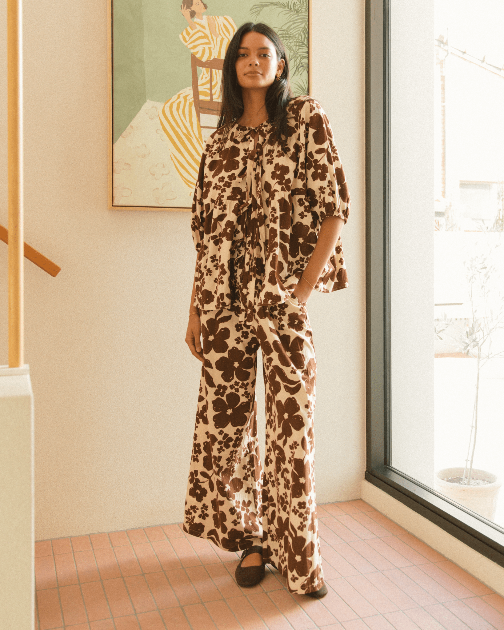 Whether you’re lounging, lunching, or growing a little human (or all of the above), each piece in the Mocha Collection is made to move with you. From flowy wide-leg pants and oversized tie-front tops to bump- and breastfeeding-friendly smocks and lounge sets, these are the kind of pieces you’ll want to live in.