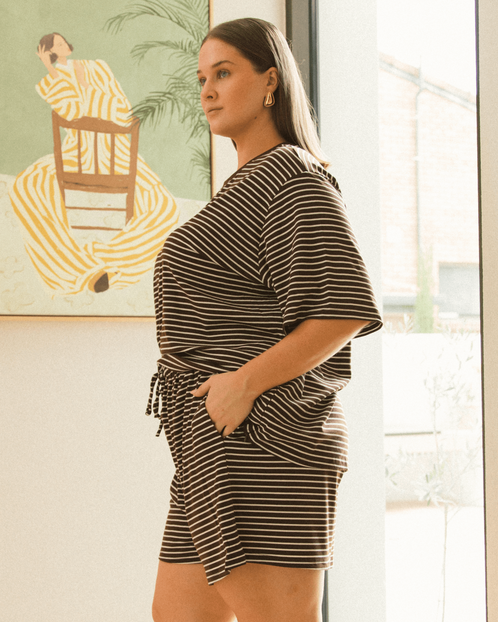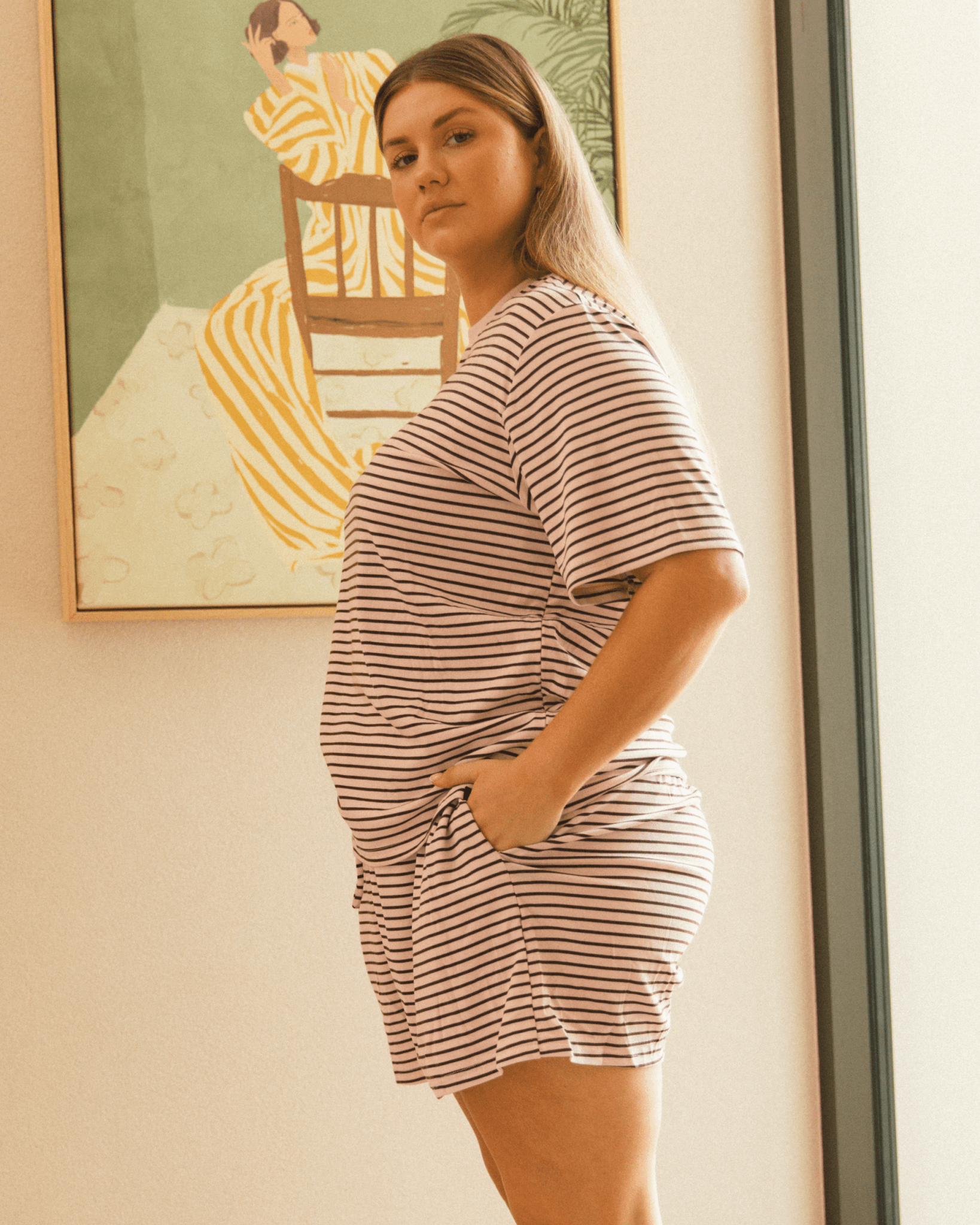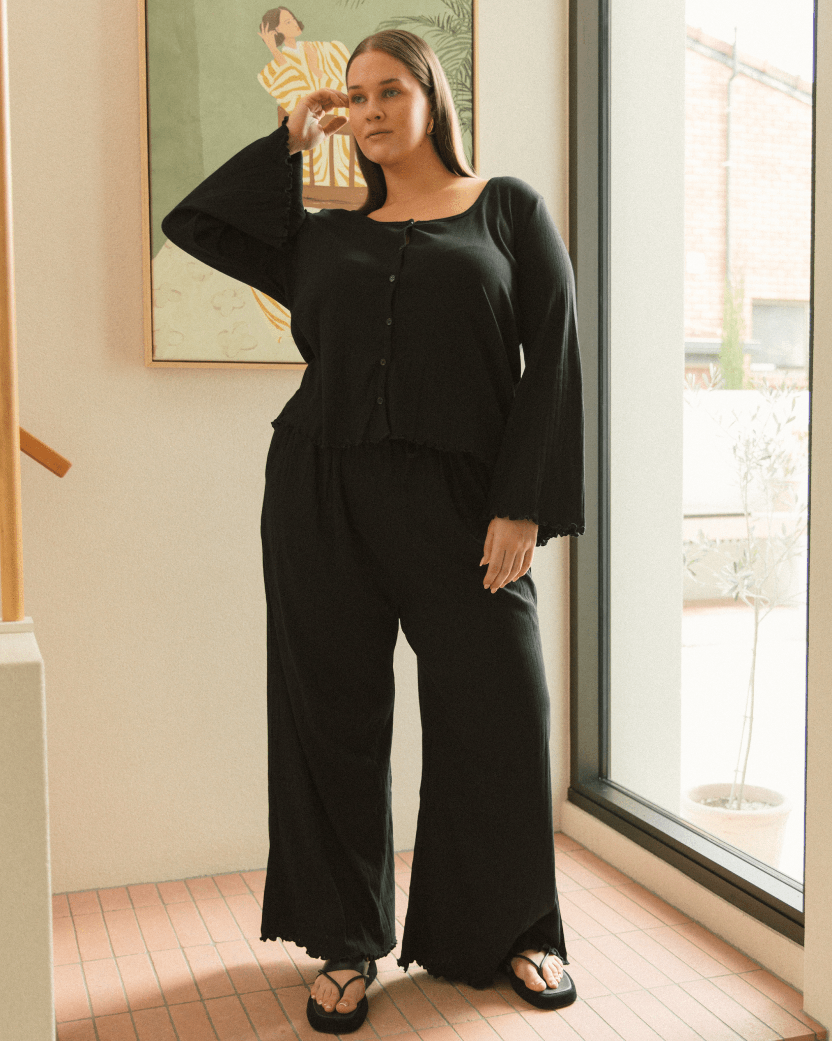 Whether you’re lounging, lunching, or growing a little human (or all of the above), each piece in the Mocha Collection is made to move with you. From flowy wide-leg pants and oversized tie-front tops to bump- and breastfeeding-friendly smocks and lounge sets, these are the kind of pieces you’ll want to live in.