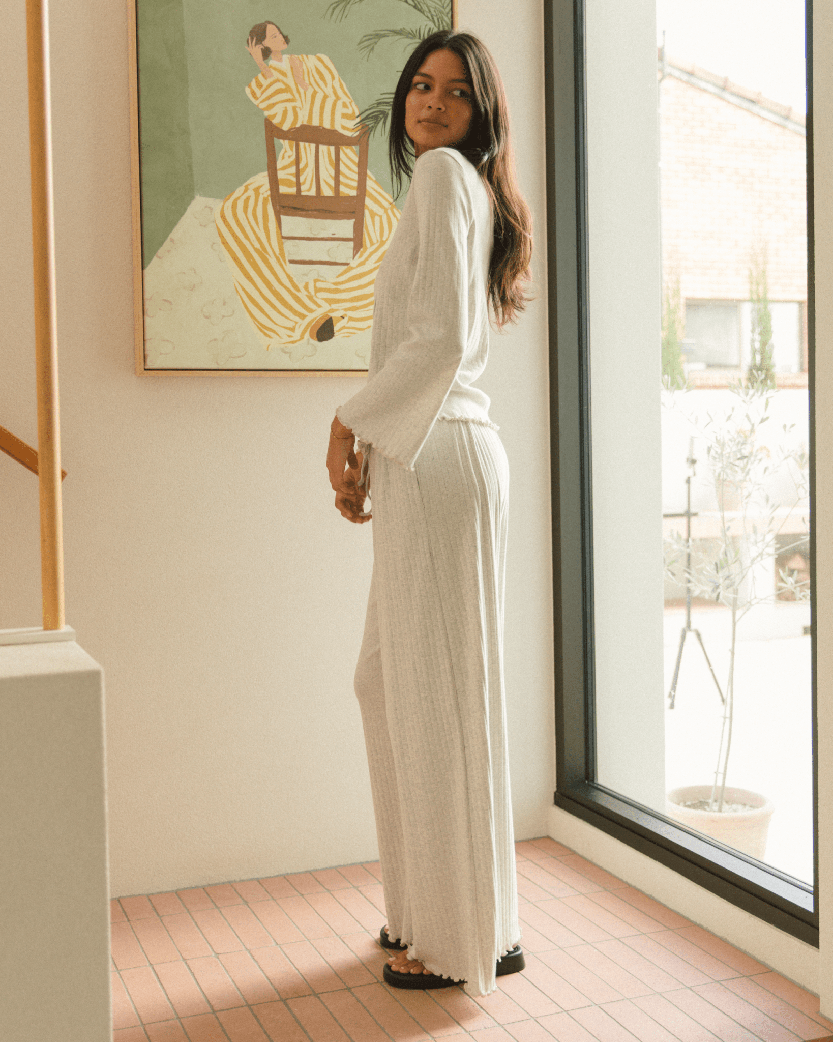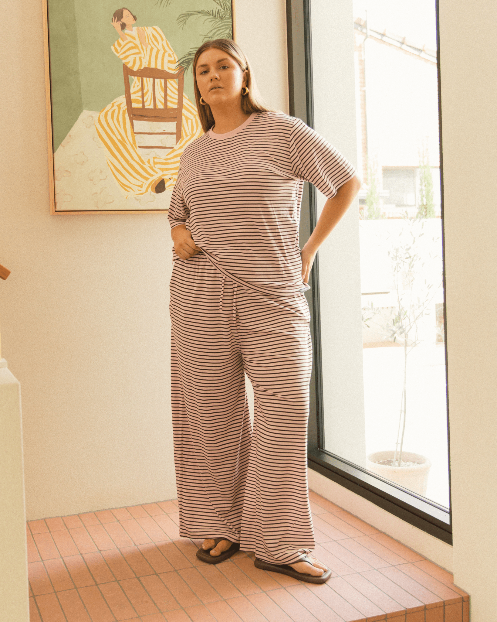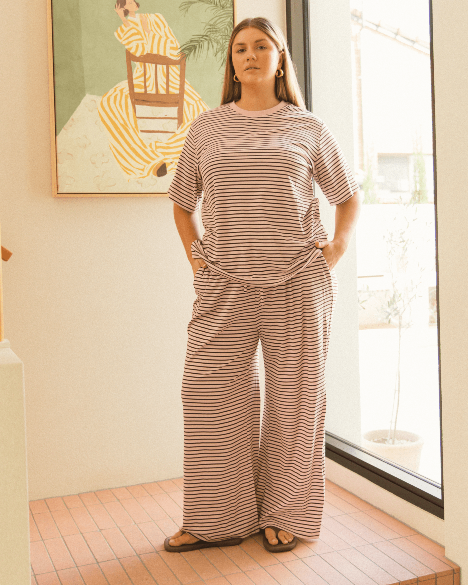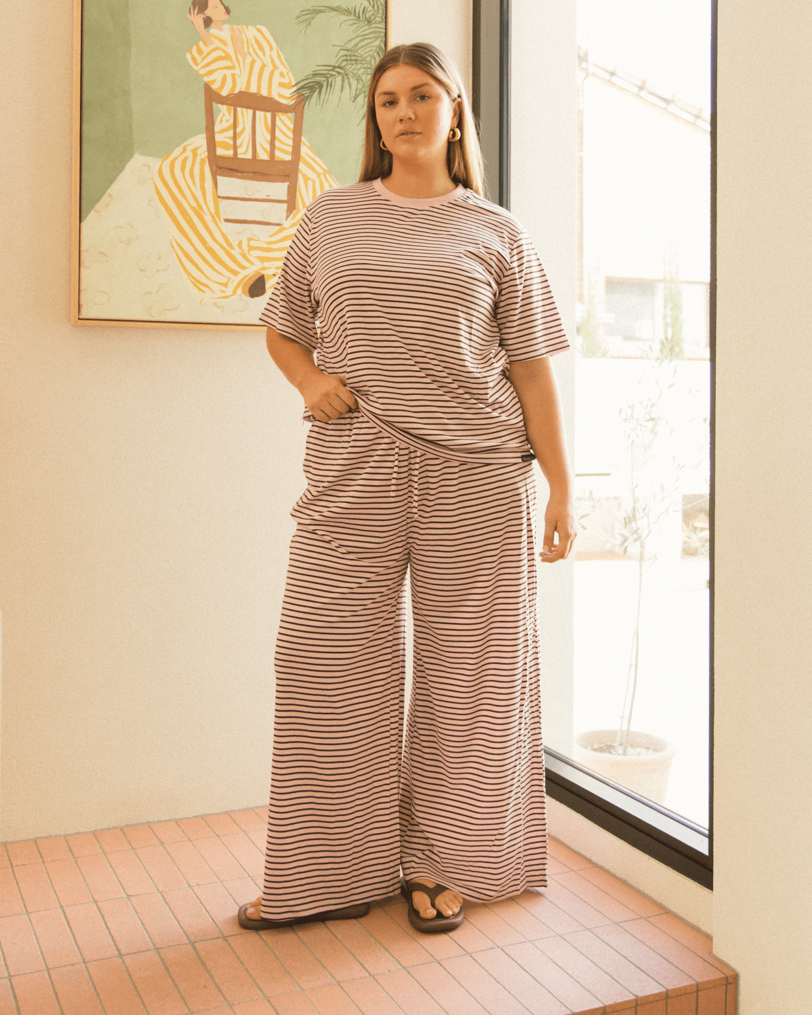 Whether you’re lounging, lunching, or growing a little human (or all of the above), each piece in the Mocha Collection is made to move with you. From flowy wide-leg pants and oversized tie-front tops to bump- and breastfeeding-friendly smocks and lounge sets, these are the kind of pieces you’ll want to live in.