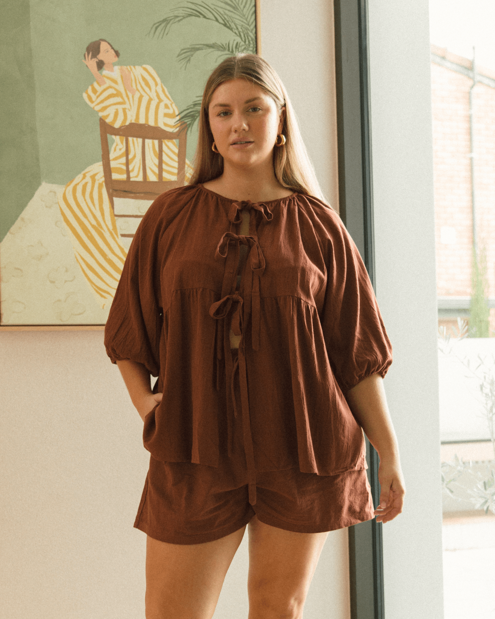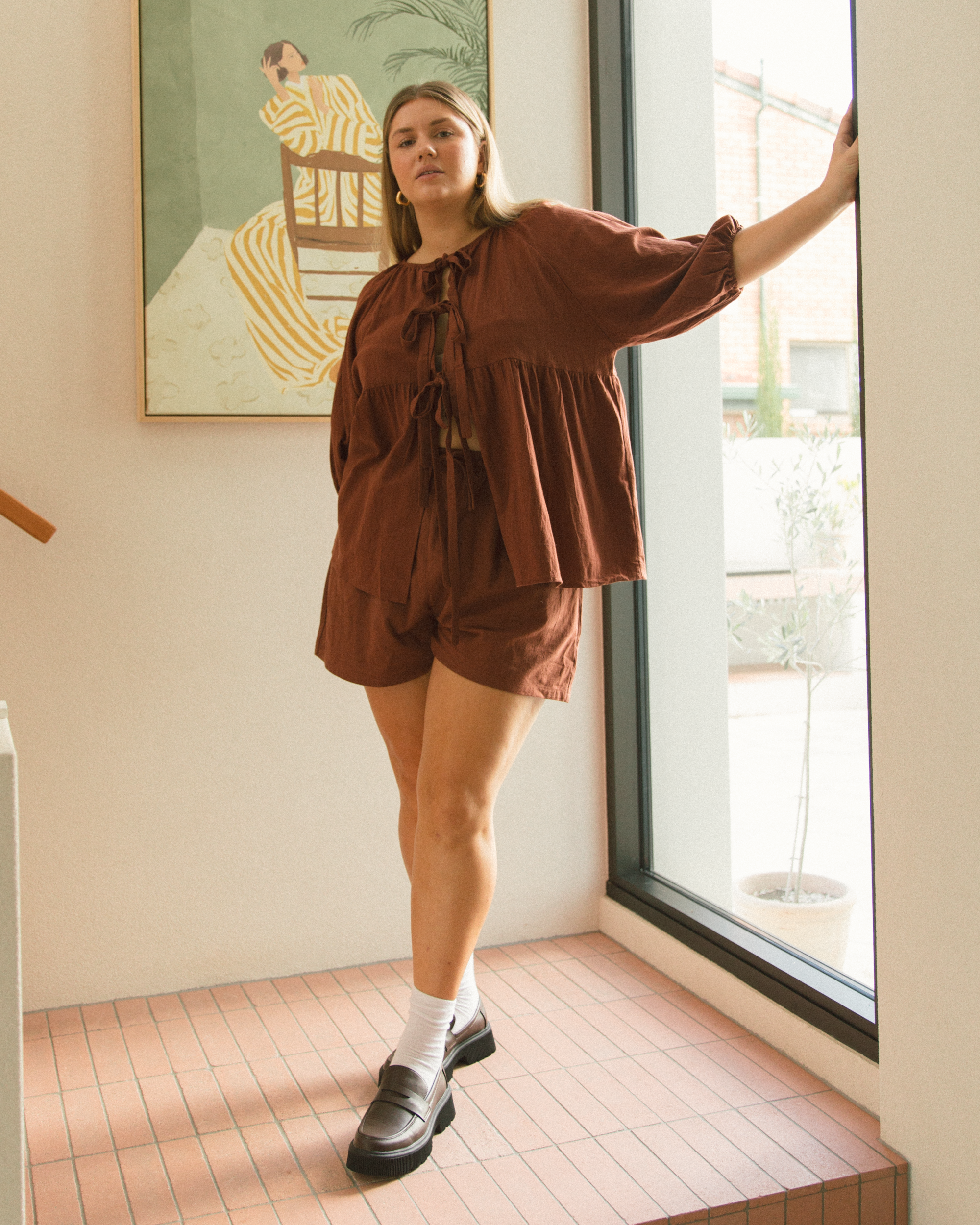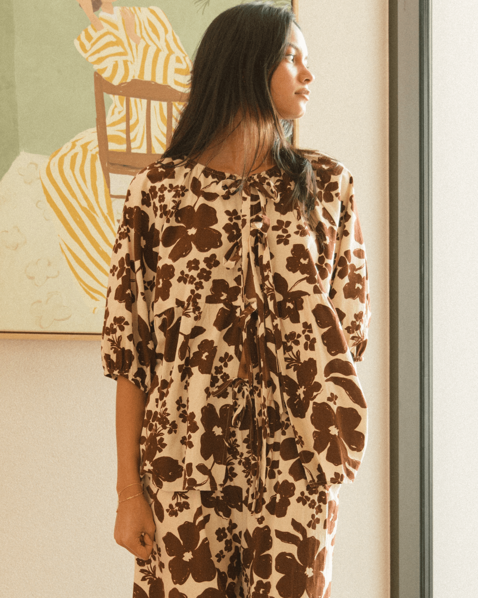 - Mix + match pieces – Go full floral or pare it back with tonal solids in rich chocolate and clay hues.