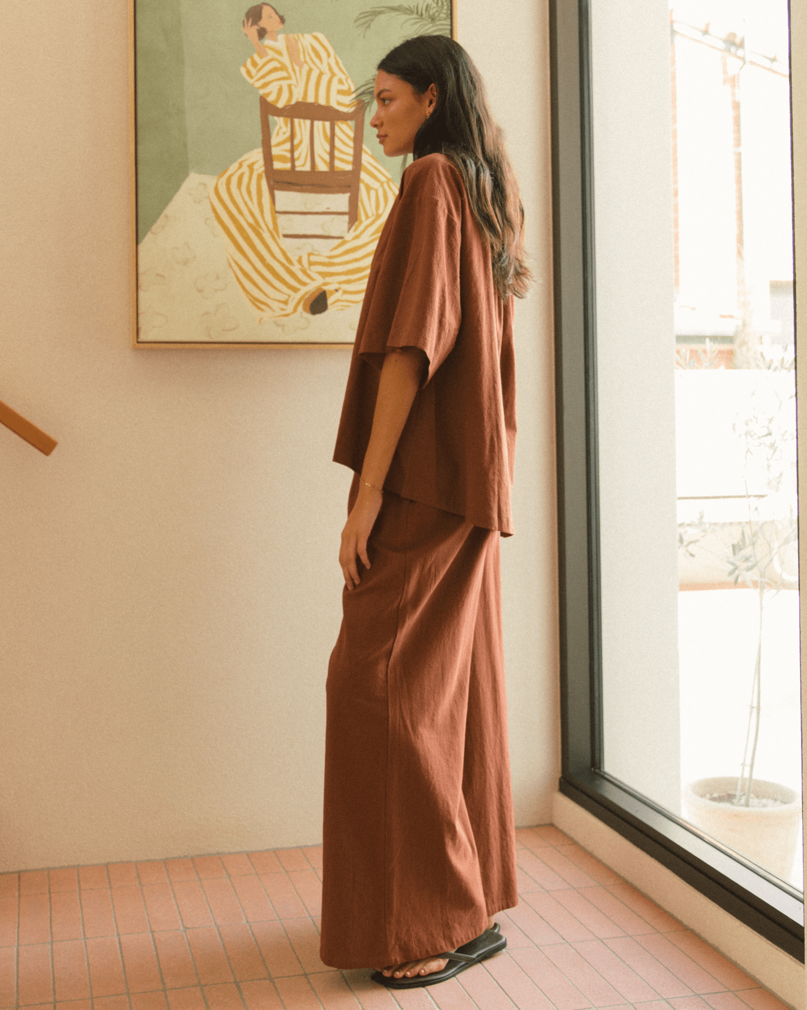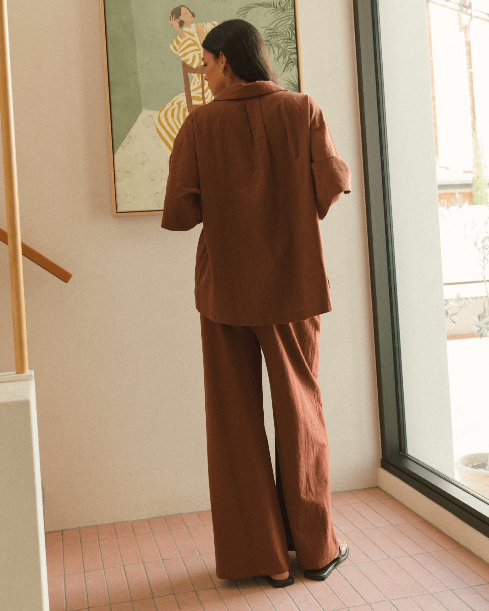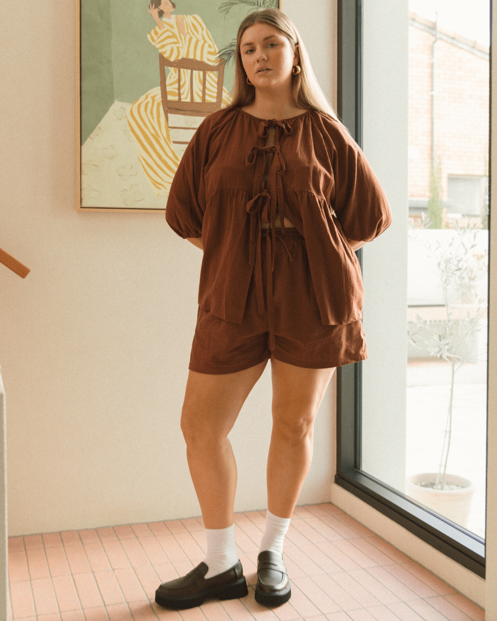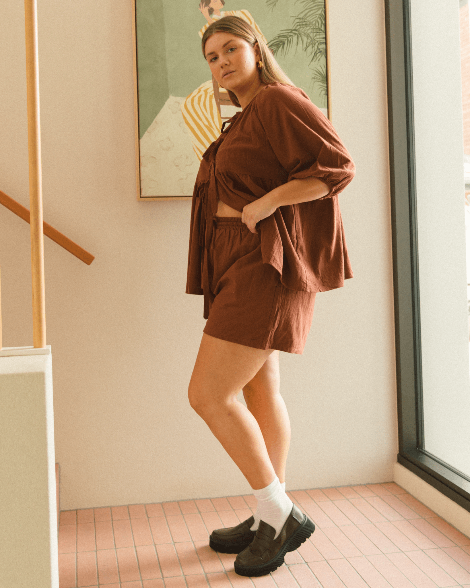 - Mix + match pieces – Go full floral or pare it back with tonal solids in rich chocolate and clay hues.