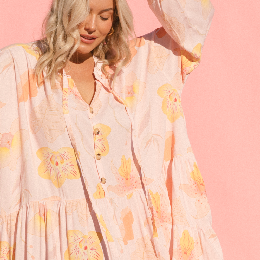 Introducing our best-selling Avalon Smock Dress! This dress is loved for its oversized fit, making it comfortable for all body shapes. The functional button and pocket detail add a practical yet stylish touch, perfect for everyday wear.