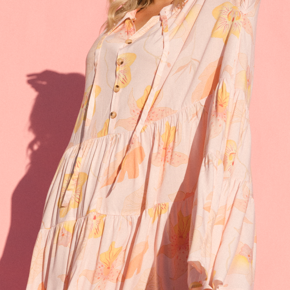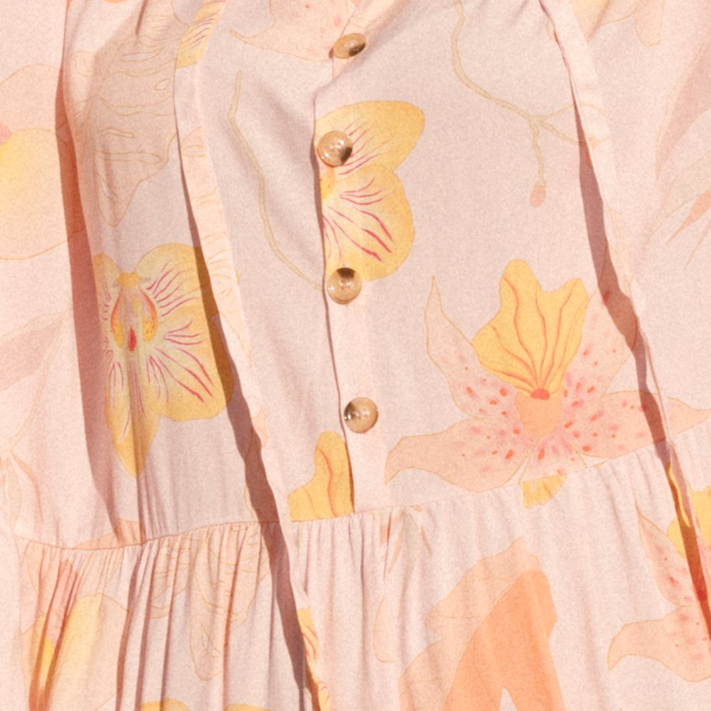 This dress is also pregnancy and breastfeeding-friendly, ensuring you can wear it throughout all stages of motherhood.Add a touch of style and comfort to your wardrobe with the Avalon Smock Dress in Dune Bloom. Perfect for any occasion, this dress is sure to become a staple in your wardrobe!