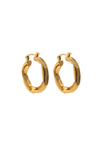 Elevate your fashion game with our Bijoux Hoop Earrings. Made from 18ct Gold Plated Stainless Steel, these hoops fuse traditional charm with a touch of wit. At 31mm, they're playful yet eye-catching, ideal for any look, whether relaxed or fancy. Make a statement with these versatile and stylish earrings!