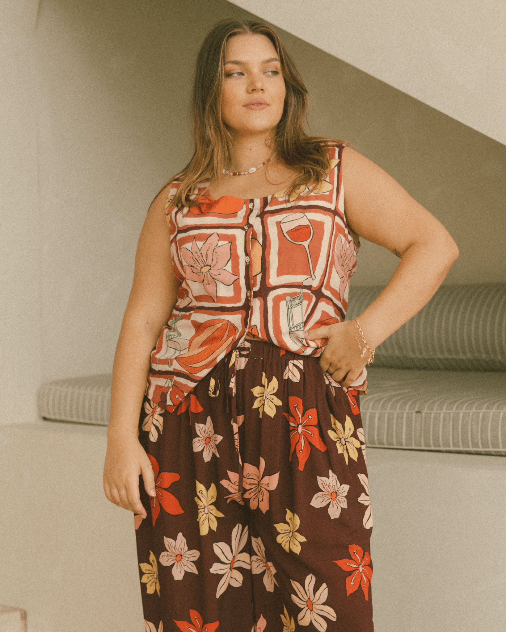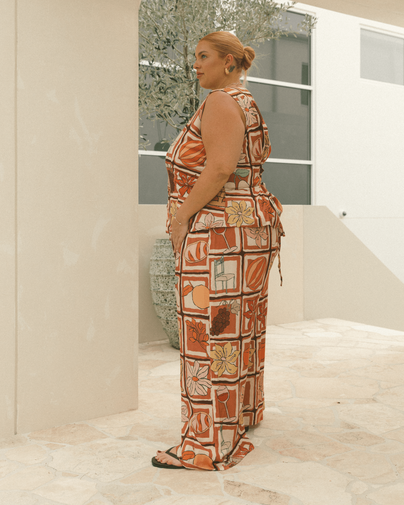Introducing the Ella Vest in our exclusive Desert Sun print—where timeless design meets modern functionality. This stunning piece is crafted from 100% breathable cotton and fully lined for all-day comfort, making it the perfect addition to your capsule wardrobe.