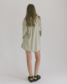 The soft green stripe has that calm, coastal feel and pairs perfectly with the matching tee or shirt for the full set moment. Cute, coordinated and absolutely effortless.
