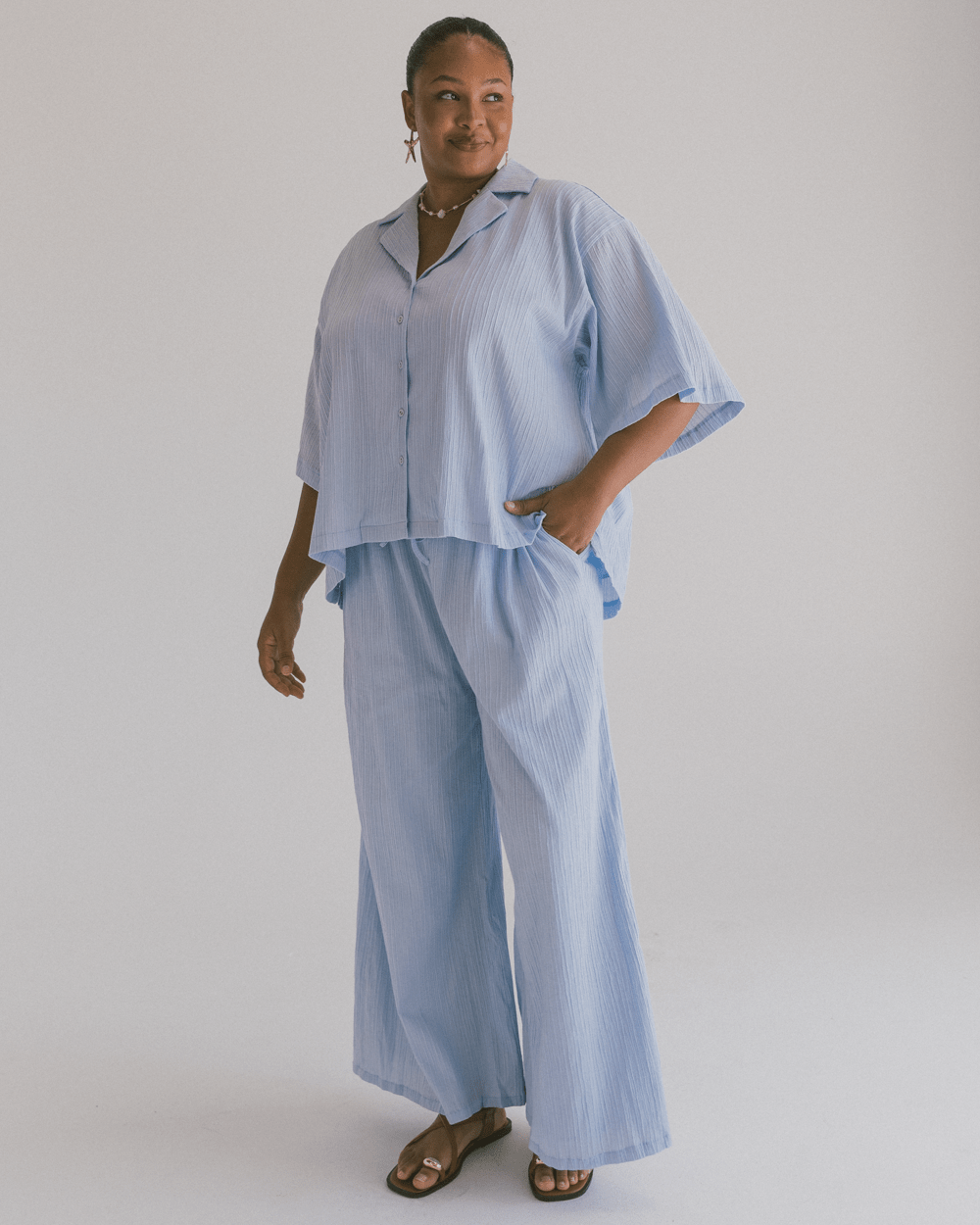 Meet your new forever favourite: the Lacey Shirt. You know the girl in high school that was cool without trying to be? This is her. Oversized, drapey in all the right places, and easy to throw on – it’s giving main character with minimal effort.