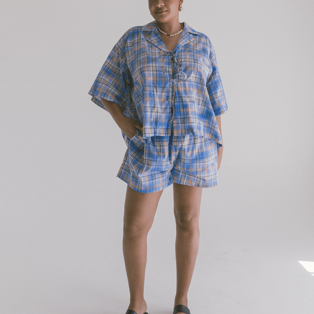 Designed for ultimate ease and versatility, the Matilda Shorts are your go-to piece for effortless style and all-day comfort. Crafted from 100% breathable cotton, these relaxed-fit lounge shorts feature an elasticated waist with an adjustable drawstring, allowing for a customizable fit that flatters every body type.