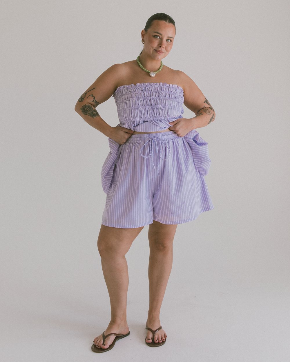 From bed to beach and everywhere in between — the Matilda Shorts are here to make getting dressed feel like a treat, not a chore. With their easy boxy shape, elastic drawstring waist and those essential pockets (because we all need somewhere to stash snacks), these shorts are comfort with main-character energy.