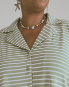 Meet the softest, easiest throw on shirt in your wardrobe. The Lacey Shirt in Green Stripe is that comfy, oversized button up you grab when life is full and you still want to look cute and put together. Made from a dreamy blend of 92% Tencel and 8% Spandex, it is smooth, breathable and has just the right amount of stretch so it moves with you through every part of your day.