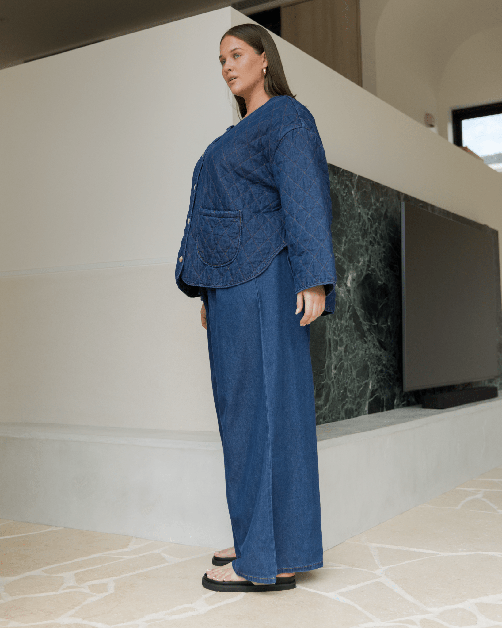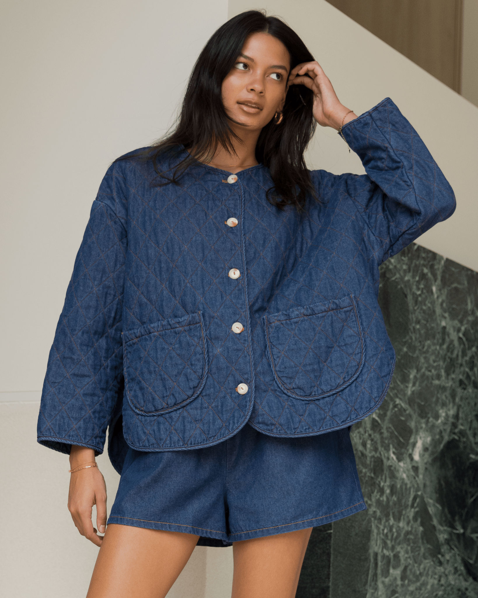 Say hello to your new throw-on-and-go favourite — our Quilted Jacket in Dark Denim. Made from 100% breathable cotton and finished in a timeless indigo wash, this oversized layer is the ultimate mix of comfort, warmth and easygoing style.