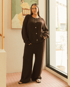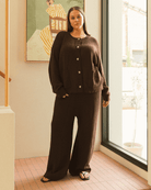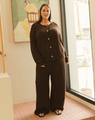 With a wide-leg silhouette and an adjustable drawstring waistband, they’re made to move with you—whether you’re lounging at home, running errands, or chasing little ones around the house. The rich chocolate hue brings that earthy, calming vibe that pairs beautifully with our matching Kevina Knit Top or anything else in your wardrobe.