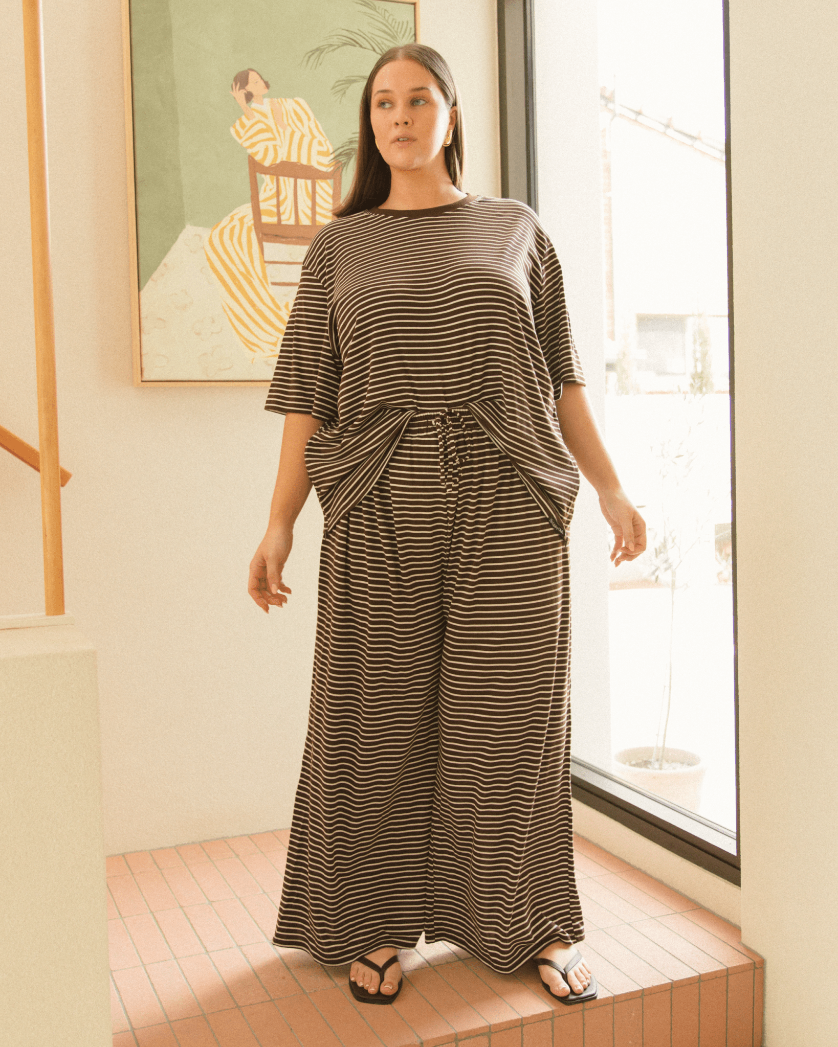 Buttery, light, breathable, and basically feel like wearing a cloud. The high elastic waistband keeps things comfy without squeezing, while the wide-leg fit gives total flowy freedom — perfect for chasing kids, chilling on the couch, or doing the “just one quick thing” kind of errands.