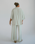The fabric drapes softly down the leg without clinging, creating that easy, flowy silhouette that feels light and effortless. The full length cut gives you a little extra swish as you walk, and the wide leg shape works beautifully on all sizes.