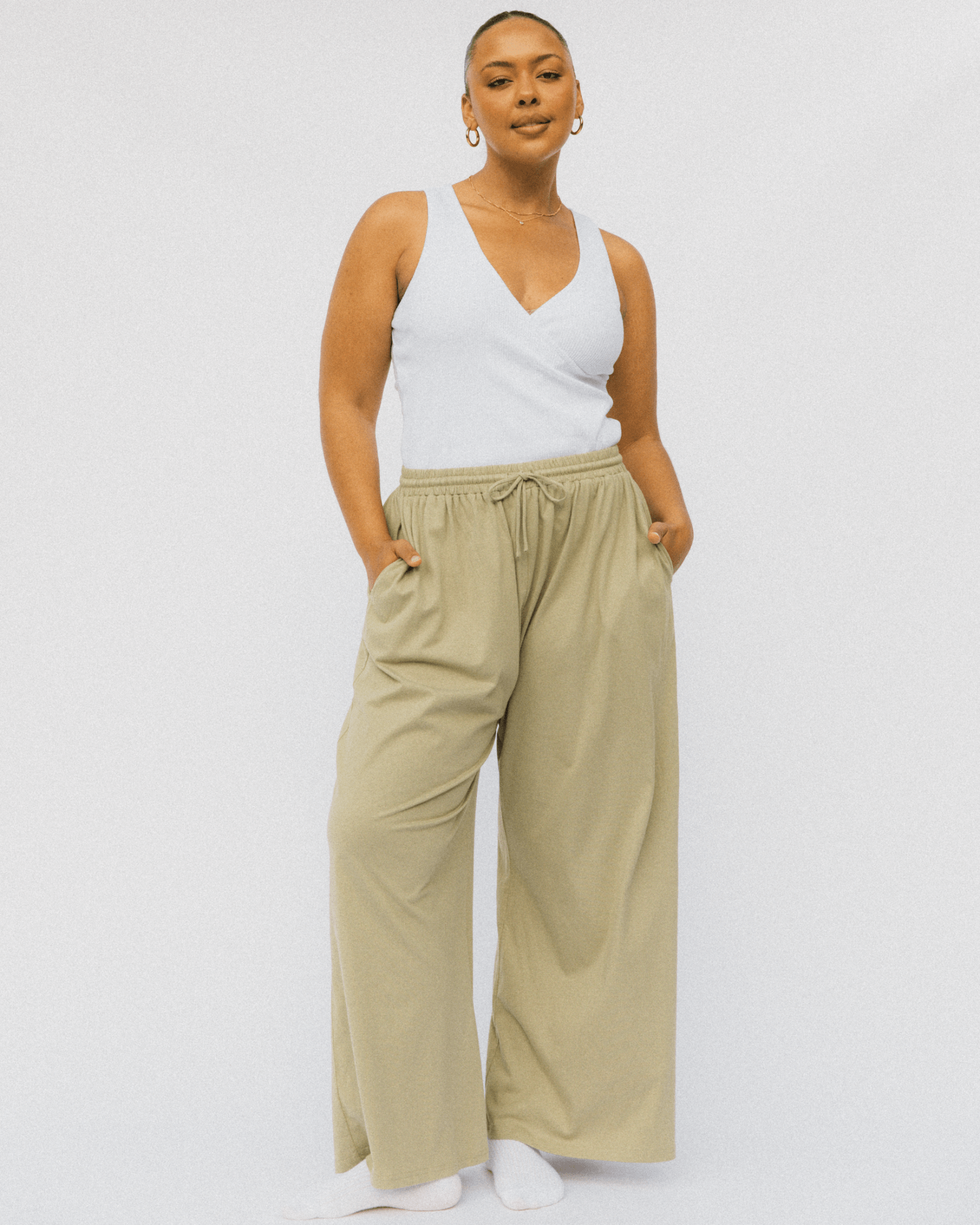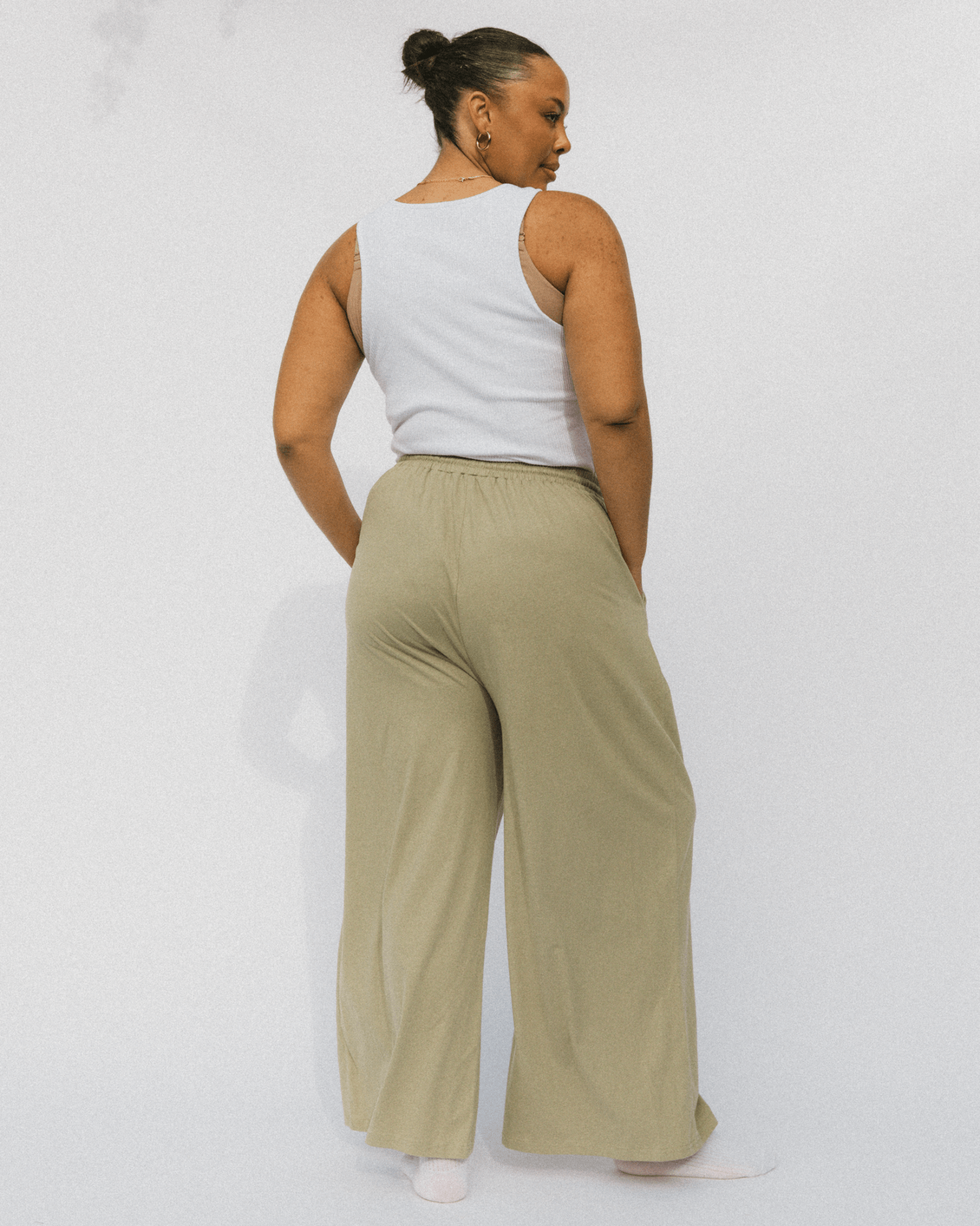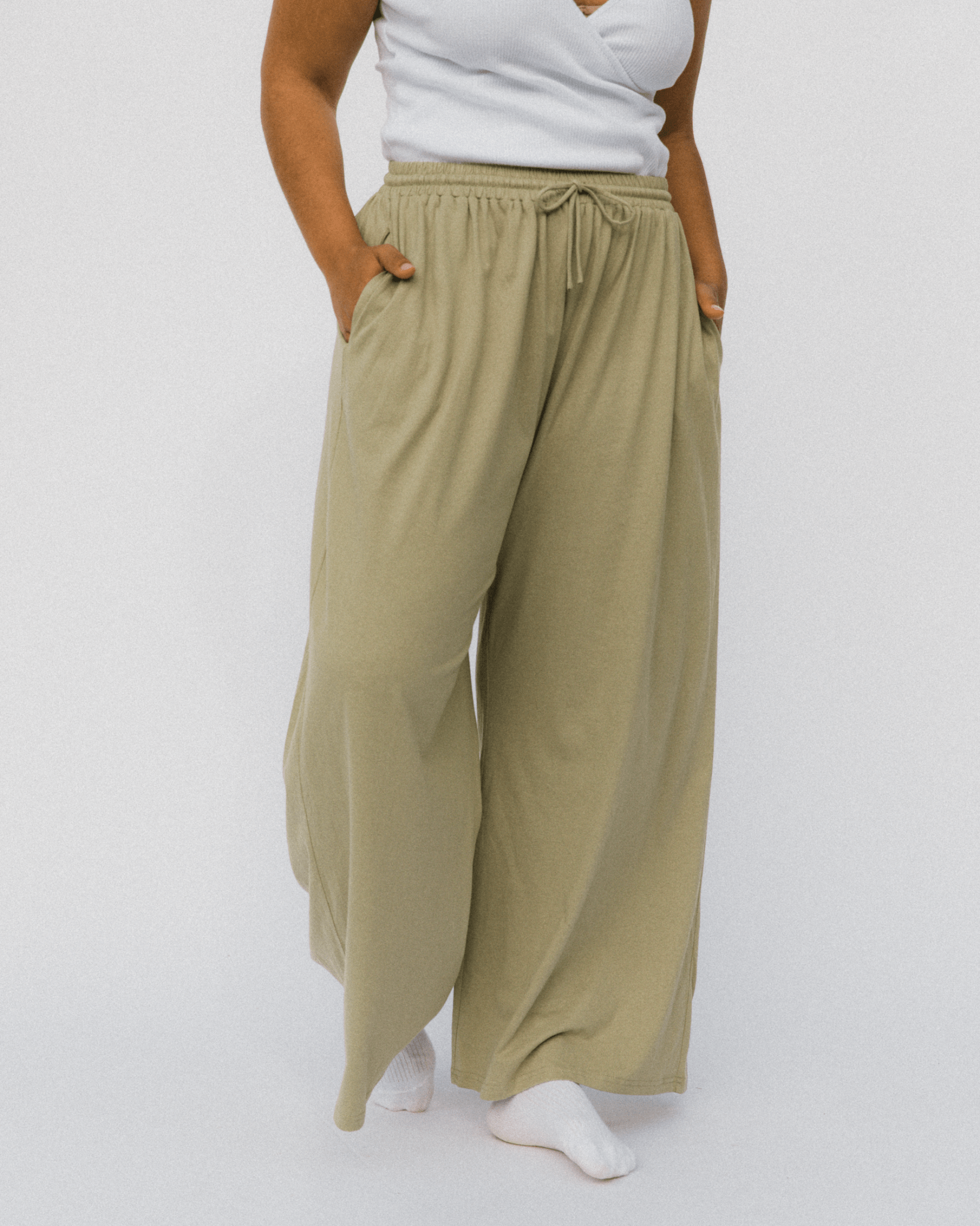 Buttery, light, breathable, and basically feel like wearing a cloud. The high elastic waistband keeps things comfy without squeezing, while the wide-leg fit gives total flowy freedom — perfect for chasing kids, chilling on the couch, or doing the “just one quick thing” kind of errands.