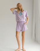 These aren’t just any lounge shorts. Ridiculously soft & stretches in all the right places and stays breathable when life gets a little sweaty. The high-rise elastic waist is there to love you through every snack break, toddler wrangle and “I forgot we had swimming today” moment.