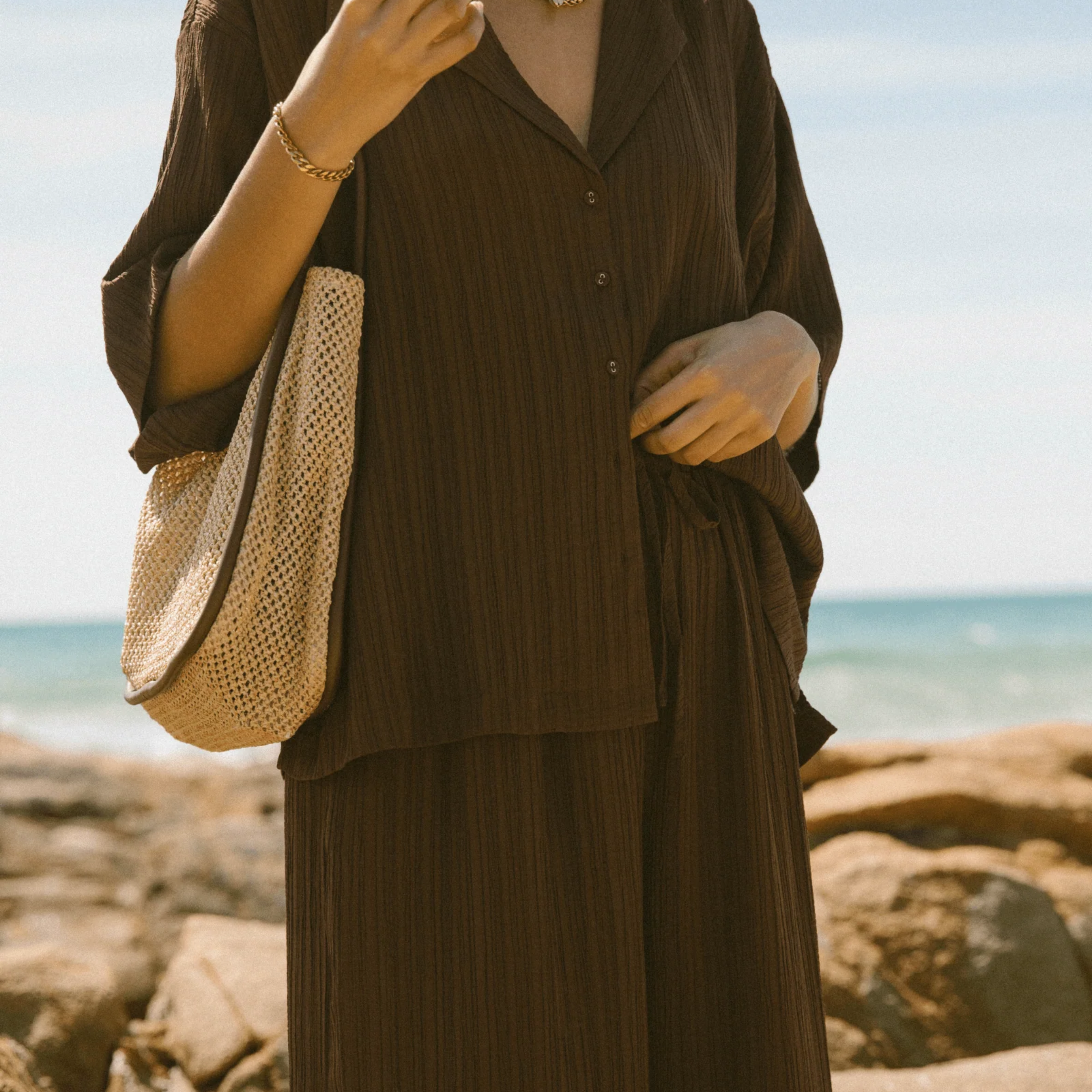 Our Crepe styles are crafted from a beautiful, breathable blend designed for comfort and elegance. Due to the nature of the loose weave, this fabric is more delicate than our cotton and linen pieces and requires extra care to maintain its quality and longevity.