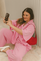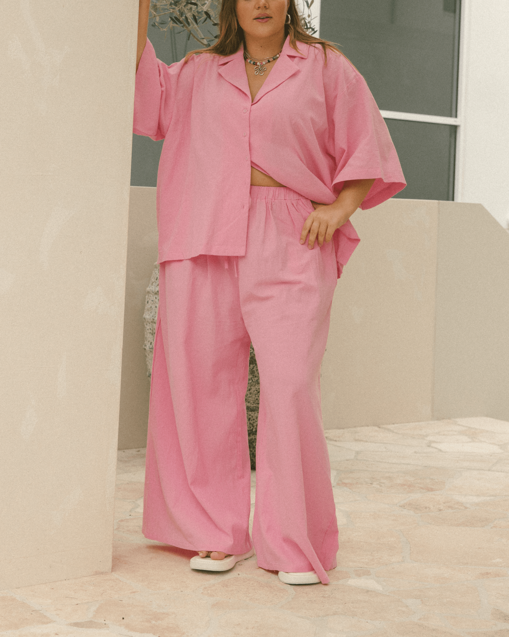 Comfort, but make it cute. Our Posey Pants are basically your new uniform for everything from couch hangs to cocktails. With their oversized, flowy fit and breezy fabric, these pants are ready to take you from bed to beach to “oh, this old thing?” brunch plans without breaking a sweat.